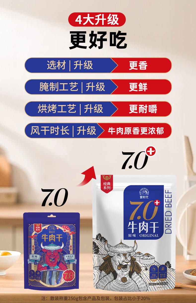 蒙时代 风干牛肉干7成干 内蒙古手撕牛肉干小零食250g