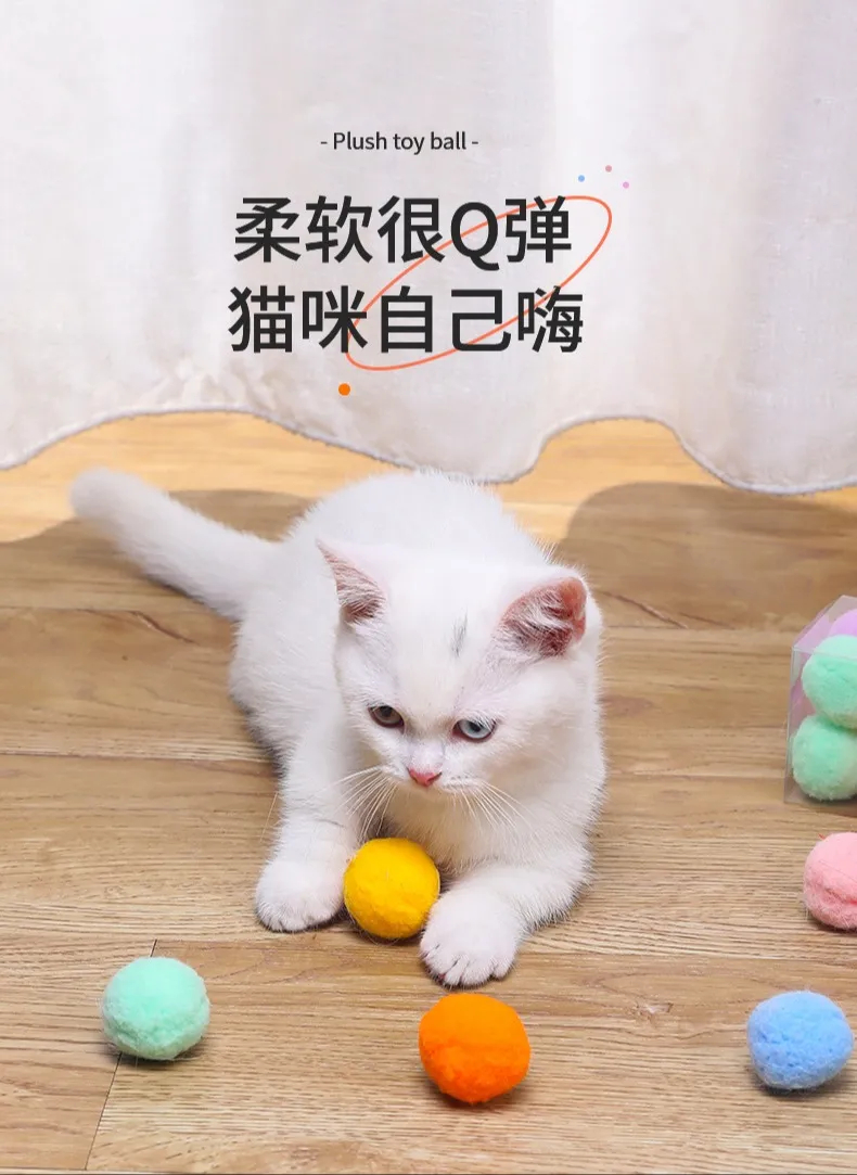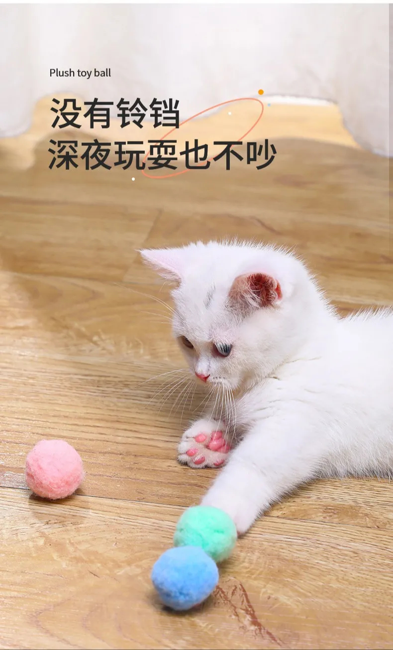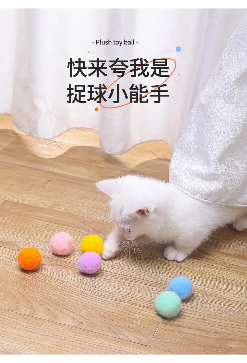 【静音不吵闹】猫玩具自嗨解闷逗猫棒静音球耐咬毛绒弹力球12个