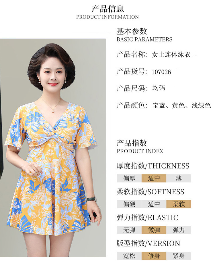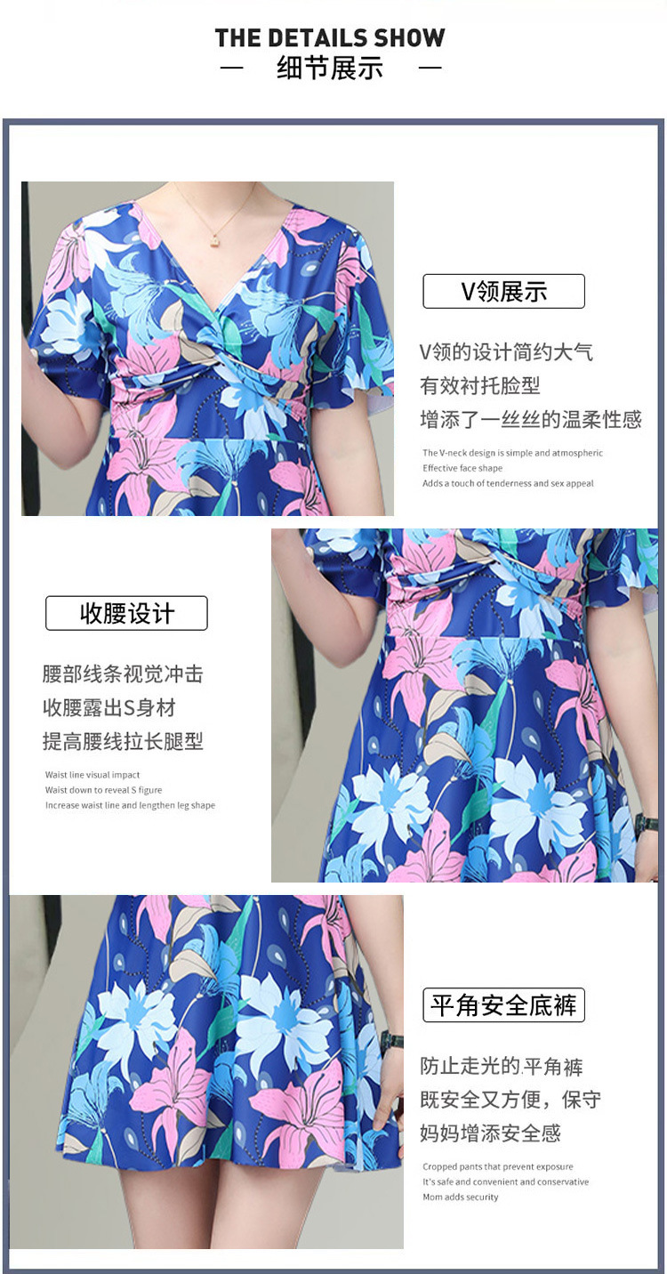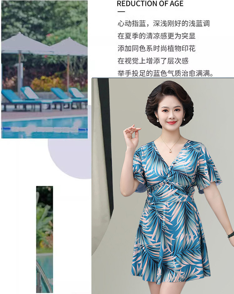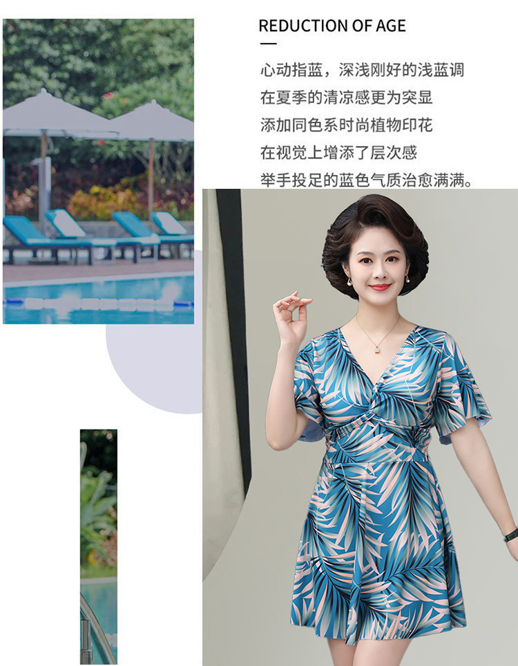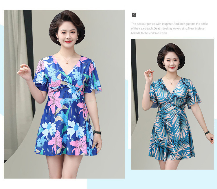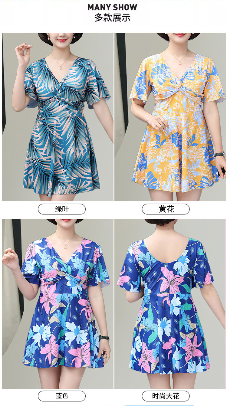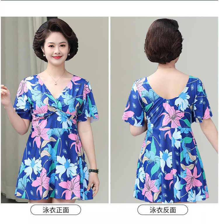 中老年泳衣女 大码保守连体印花裙 遮肉显瘦妈妈款 加肥加大休闲泳装