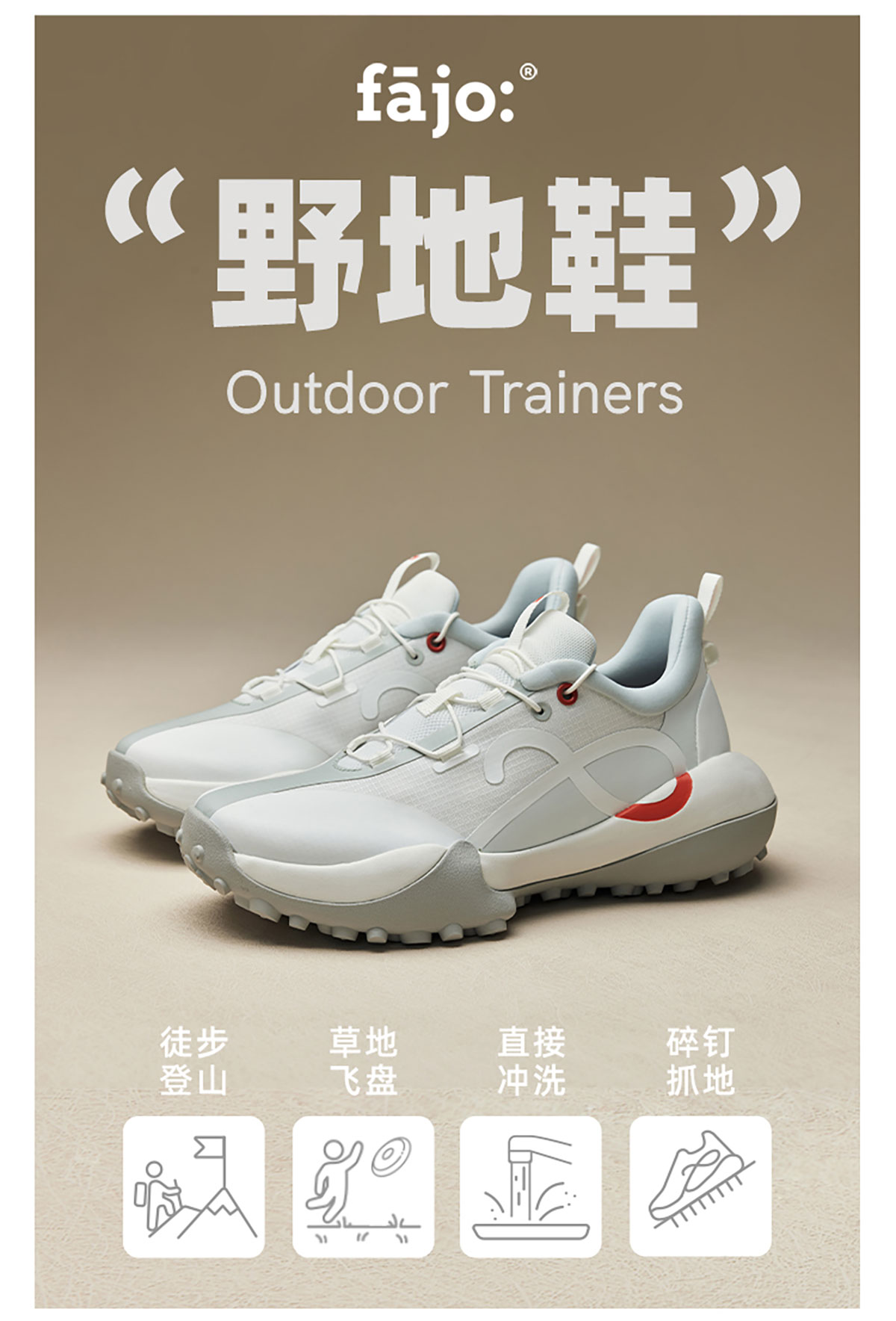 fajo花椒星球 野地鞋 白光 男女同款 户外徒步运动休闲鞋