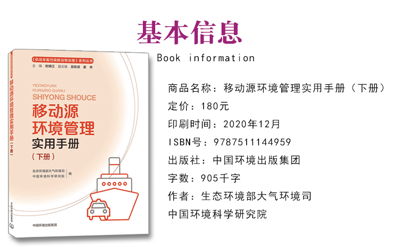 移动源环境管理实用手册下册 生态环境部大气环境司 中国环境科学研究院 中国环境出版集团9787511144959