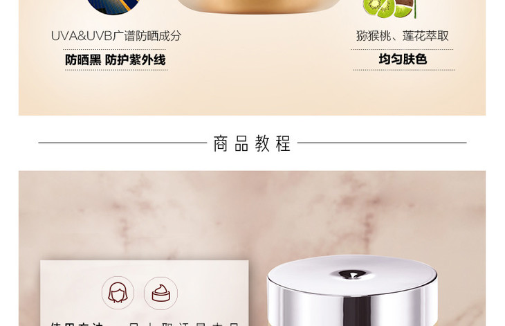 结合日间防晒,紧实抗老,肤色白皙,柔亮光泽4大好处!
