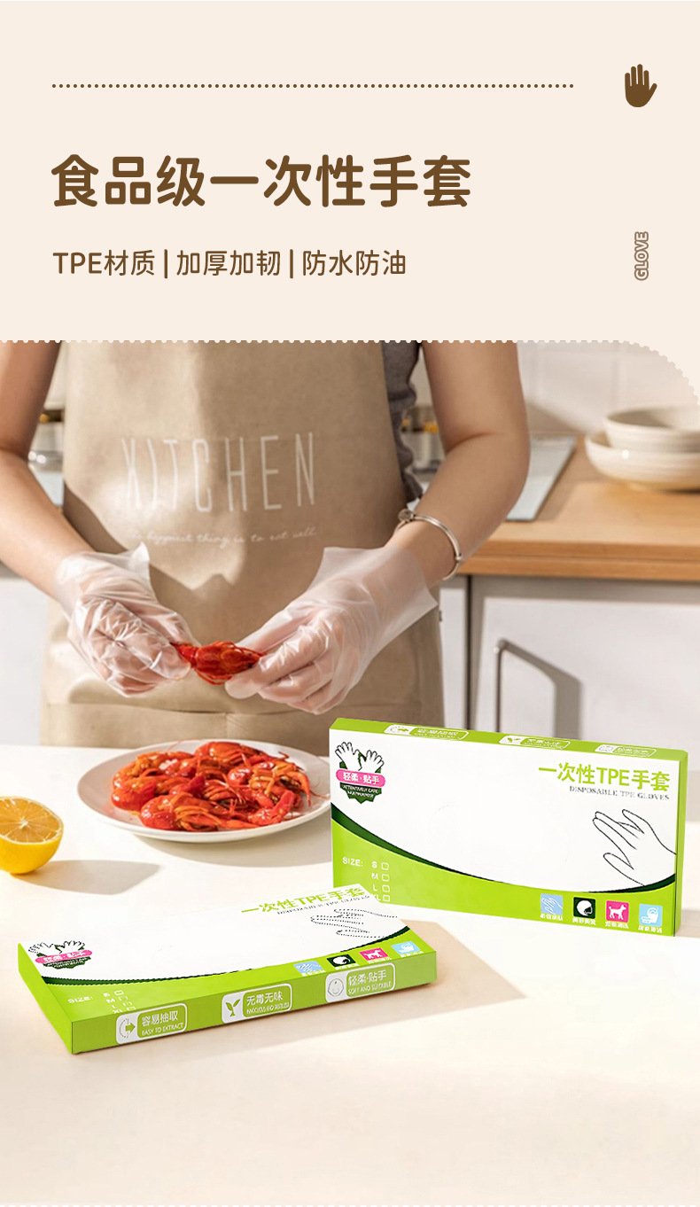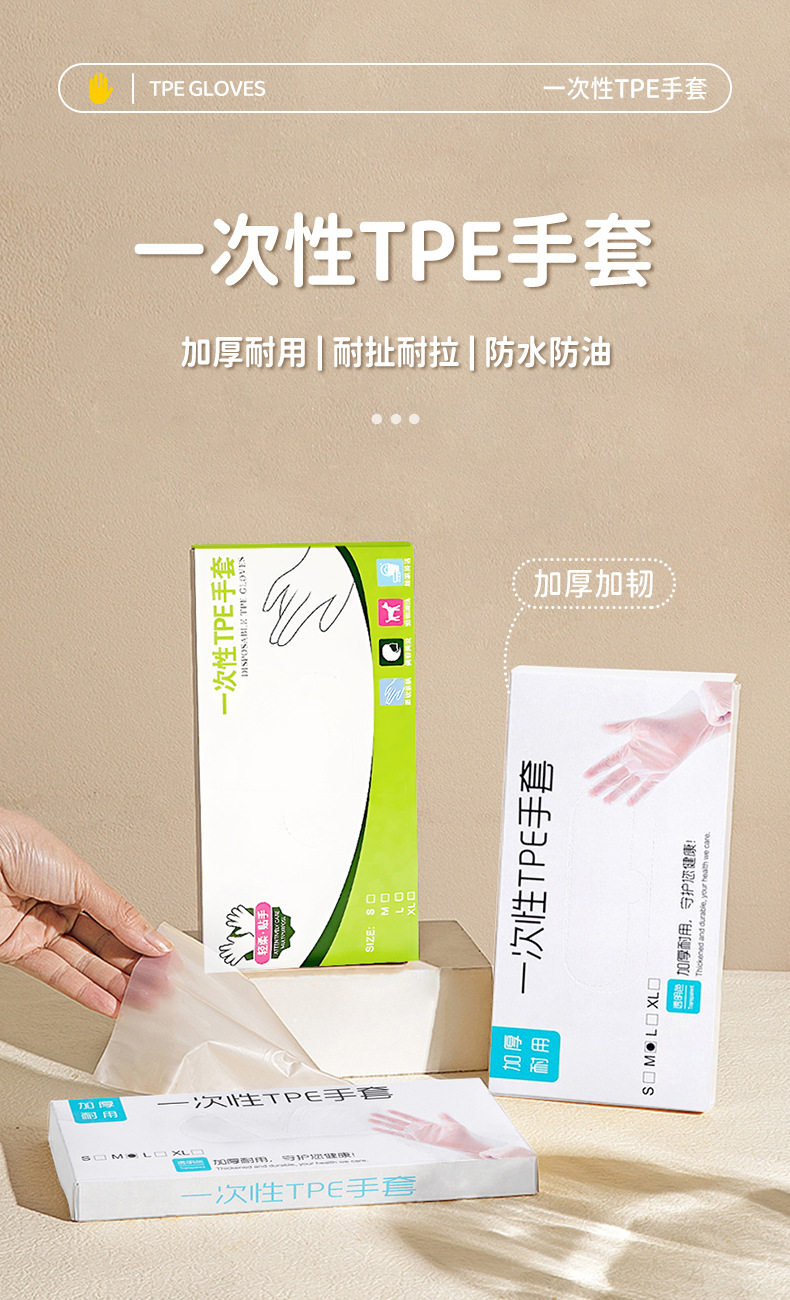 「一次性tpe手套」食品防护透明加厚TPE手套 一次性盒装薄膜手套居家日用厨房用品