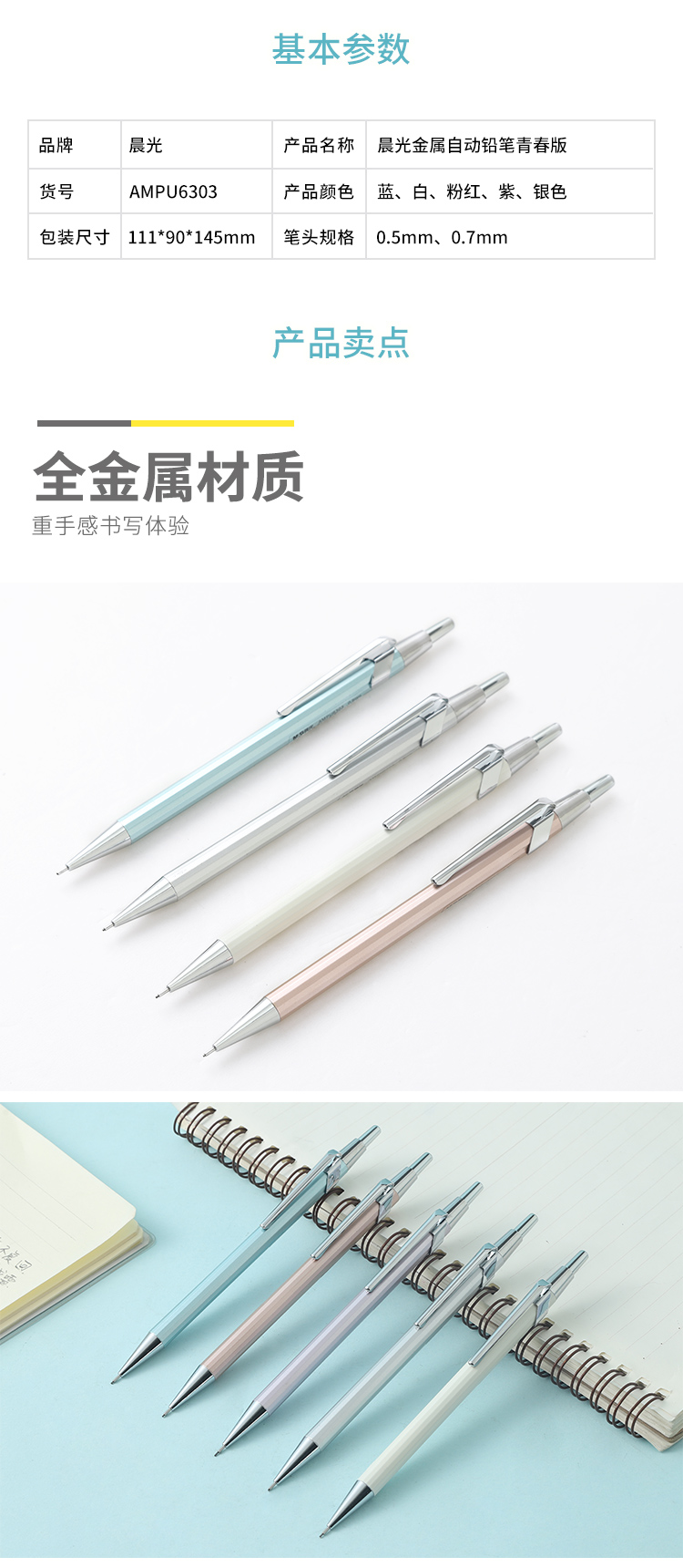 晨光自动铅笔AMPU6304黑0.7金属杆