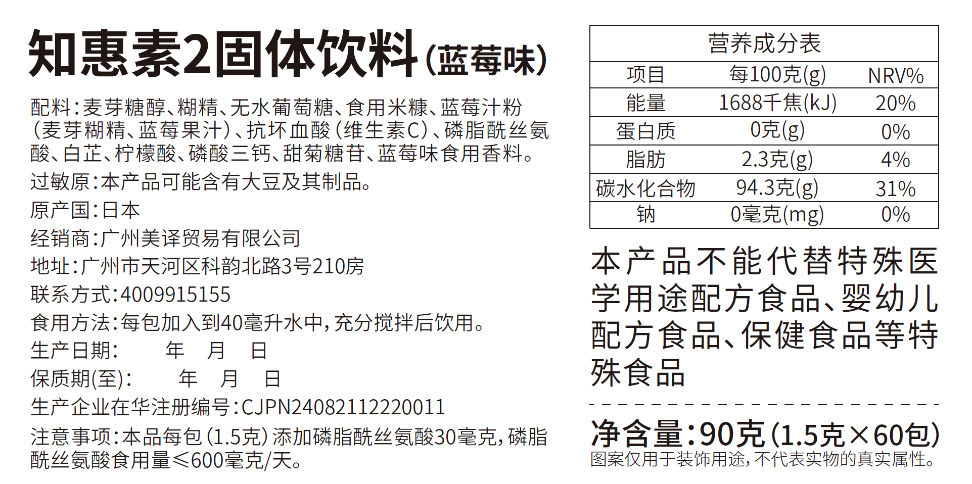知恵の素2(2盒,仅限搭配其它型号)知惠素2固体饮料(蓝莓味)