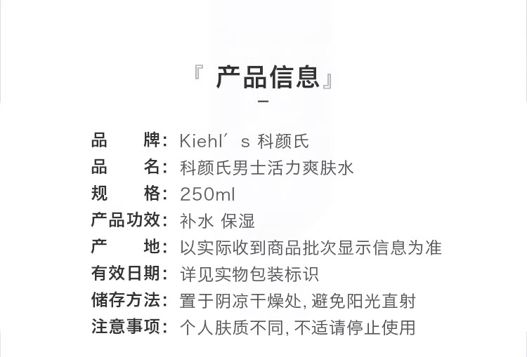 【保税仓】KIEHLS科颜氏男士活力爽肤水250ml