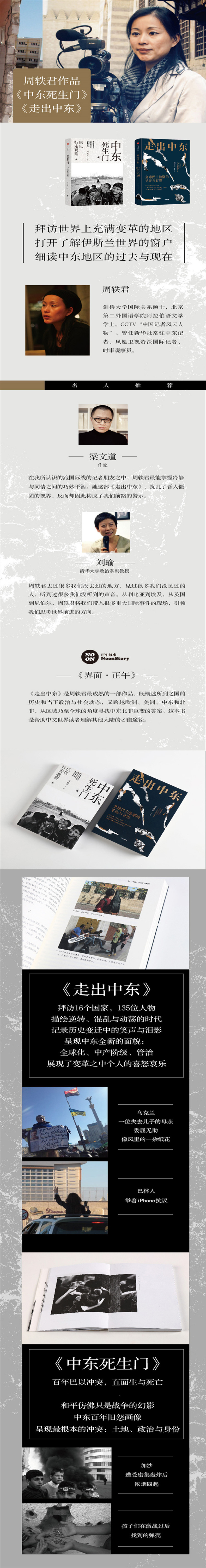 2.《中东死生门》抽掉原本的时间线索,从视觉上循序渐进,展现冲突现场。本次再版将整体结构调整,突出一百多张触及人心的图片,裸脊线装,方便阅读。突出人的故事。描绘出中东百年旧怨画像。你会看到其中根本的冲突:土地、政治与身份。