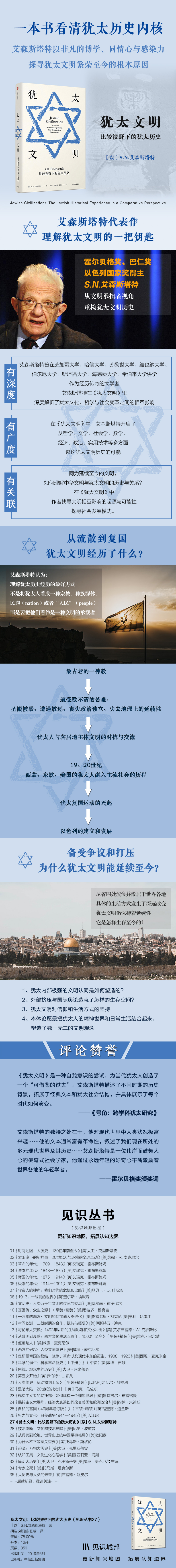作为延续至今的古老文明,中国读者对犹太文明也有着日益增长的好奇心和求知欲。艾森斯塔特如何理解两大古老文明的历史与关系?在《犹太文明》中,找寻文明相互影响的起源与可能性,探寻社会发展模式。