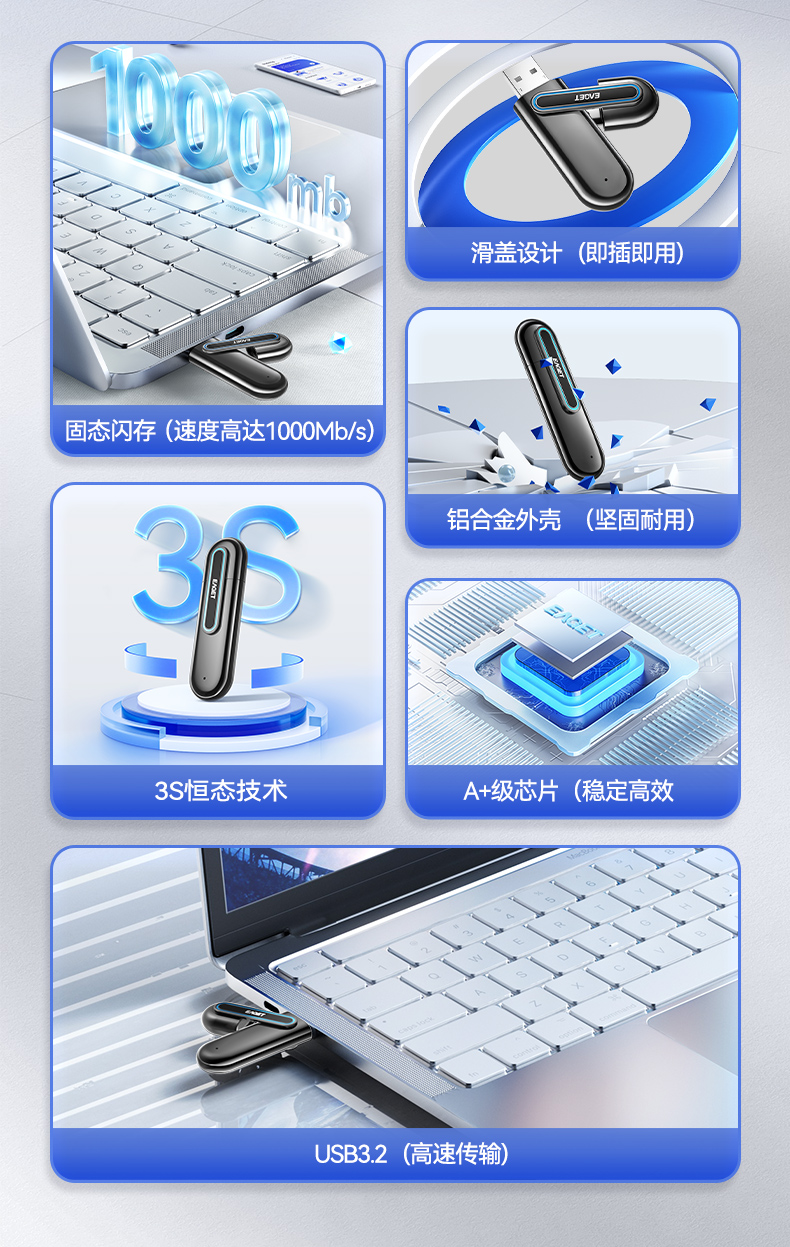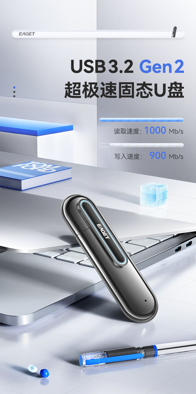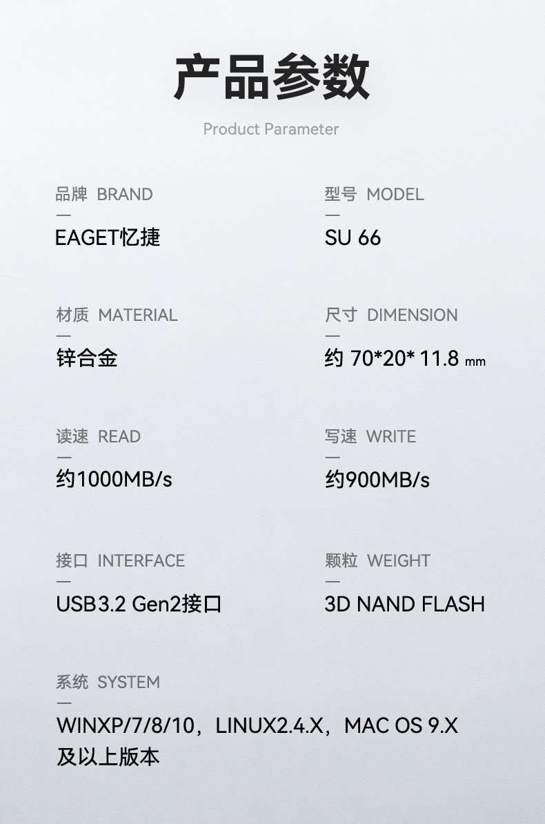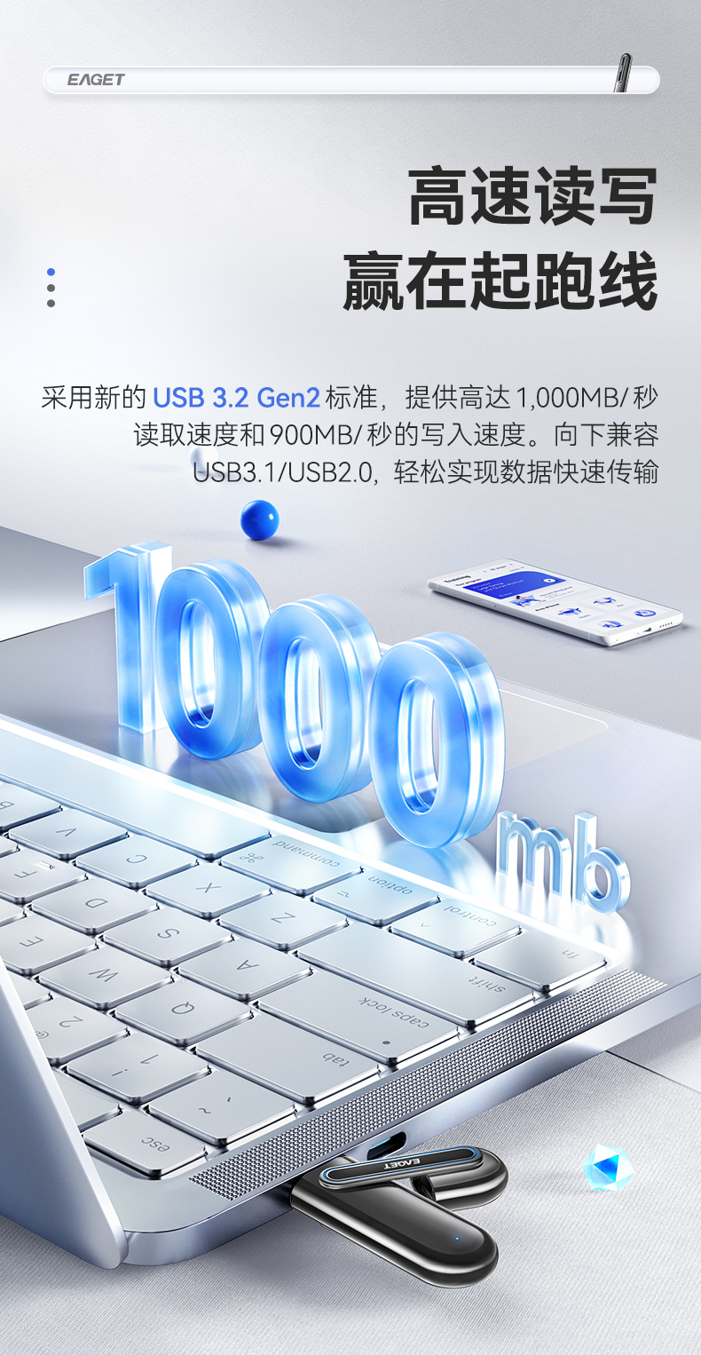 忆捷SU66 512GB USB3.2 Gen2接口 超极速固态U盘 读速高达1000MBs 写速900MBs