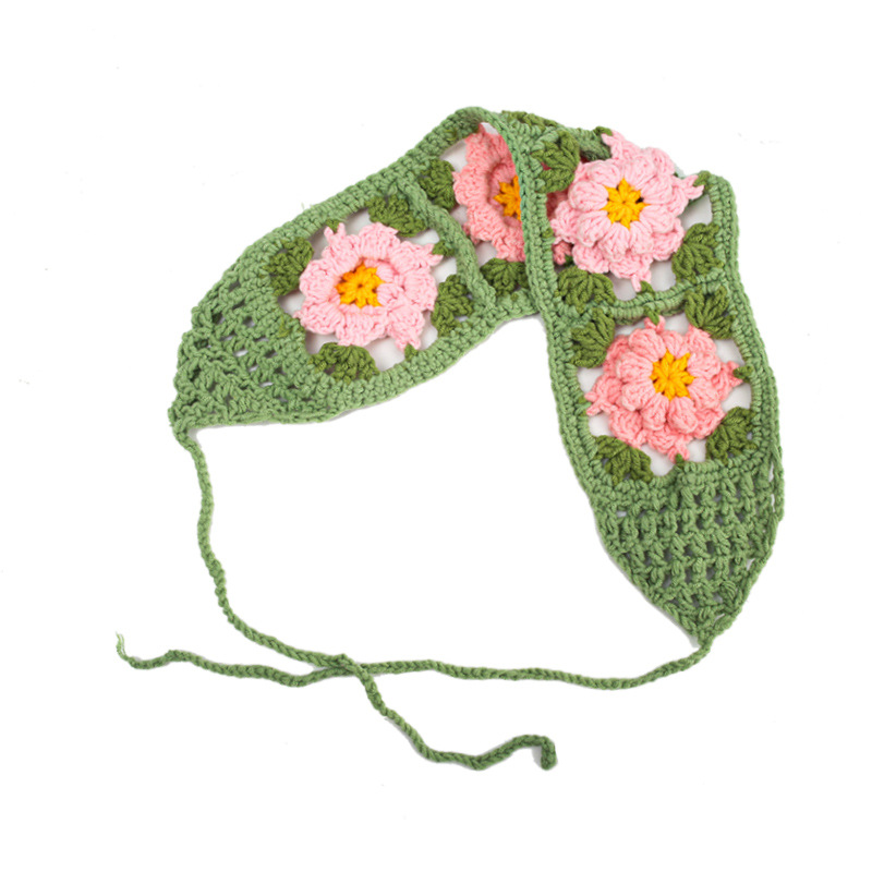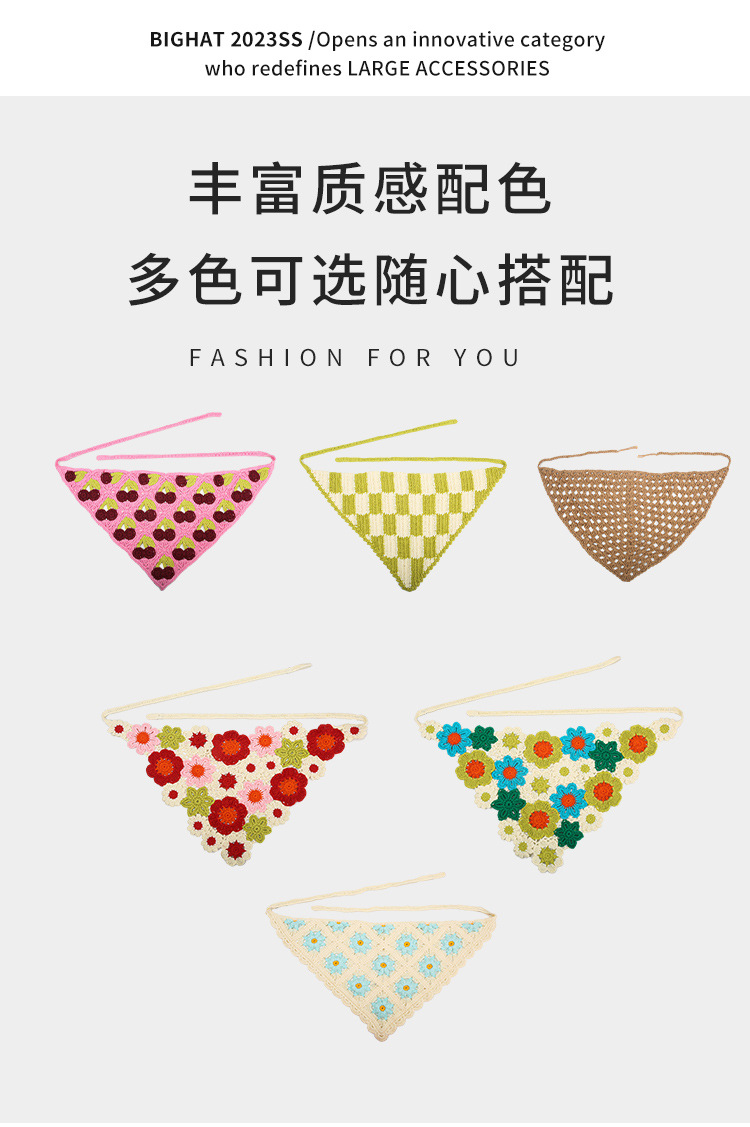 【60色!时髦出街显脸小】春秋出游ins甜美可爱风手工针织发带女发饰针织钩花头巾夏三角巾