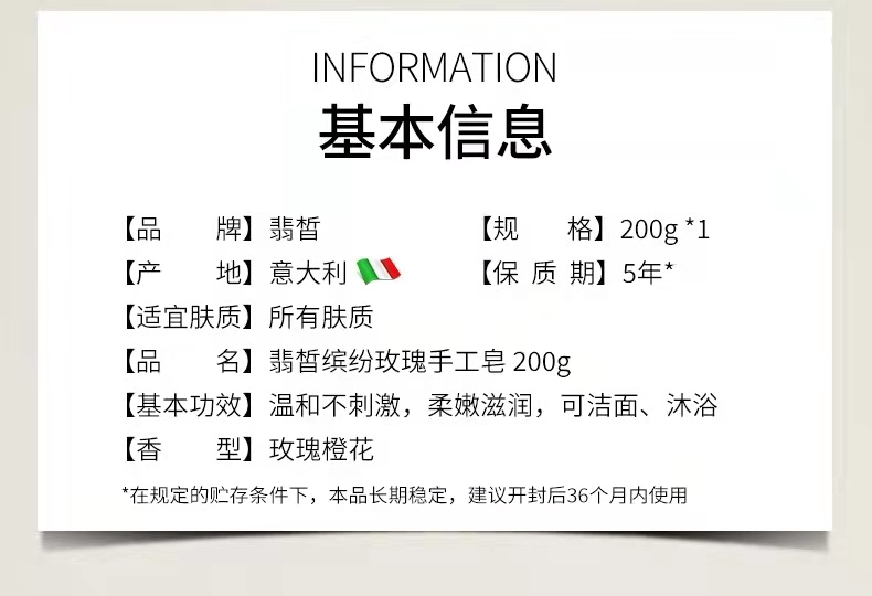 【中欧班列2块】意大利手工皂 原装进口翡皙手工洁面沐浴皂翡皙 缤纷玫瑰手工皂 200g