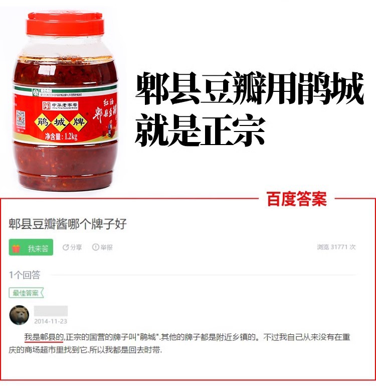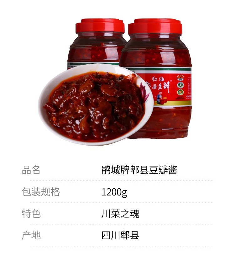 鹃城牌郫县豆瓣酱红油1200g 娟城四川正宗香辣炒菜脾啤俾郸祁豆瓣