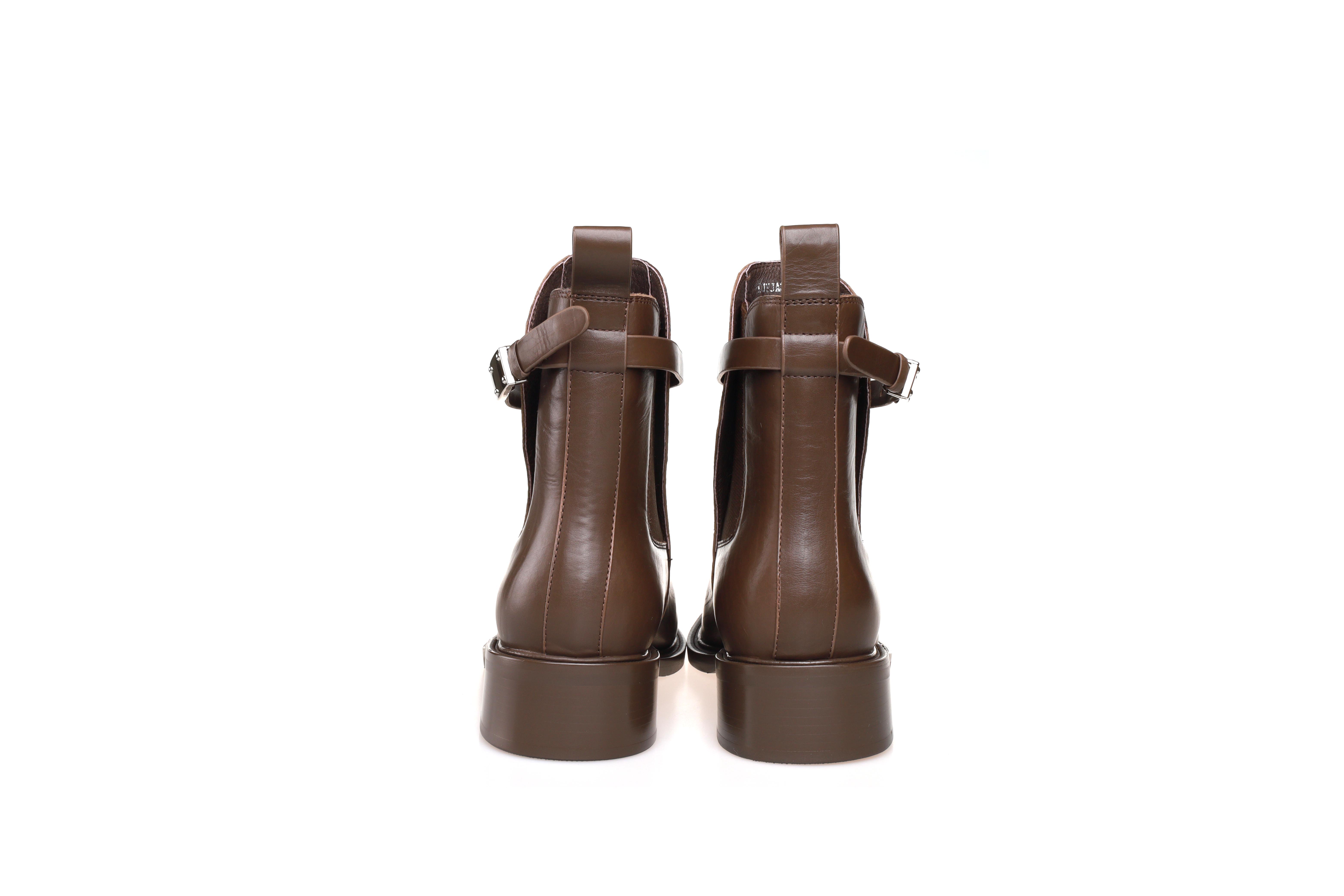 豪麟名鞋奥莱迪嘉女鞋短靴胎牛皮革DJHJA32WN023咖啡色 原价2660元