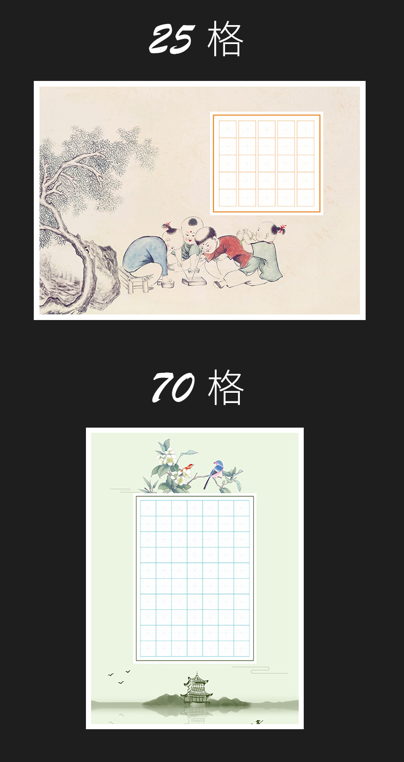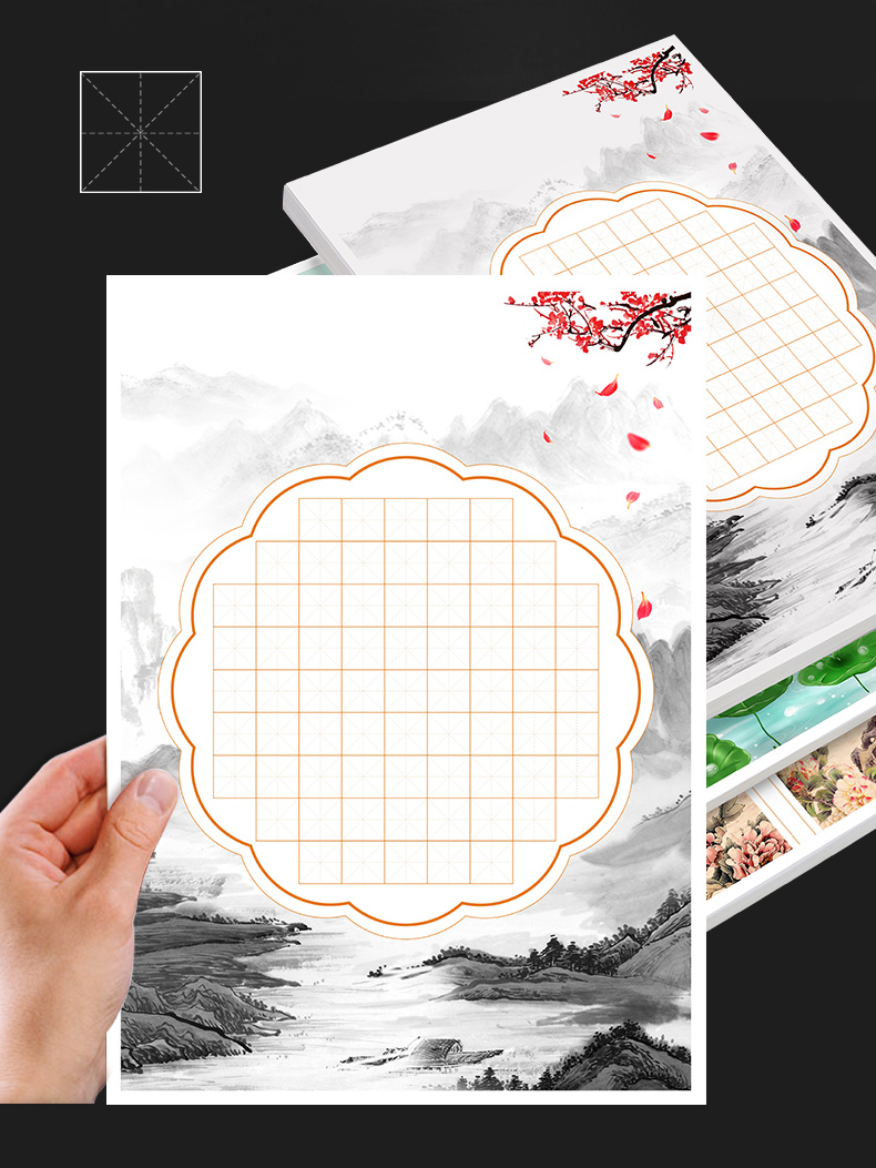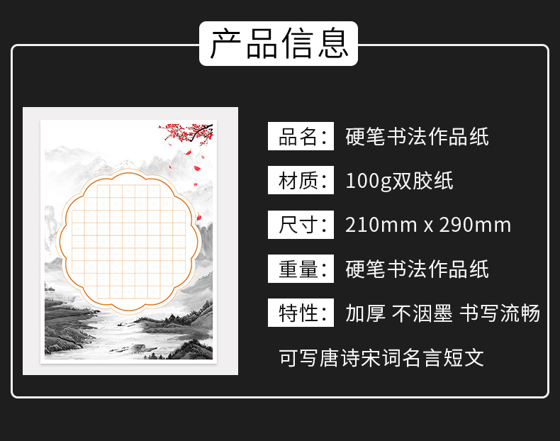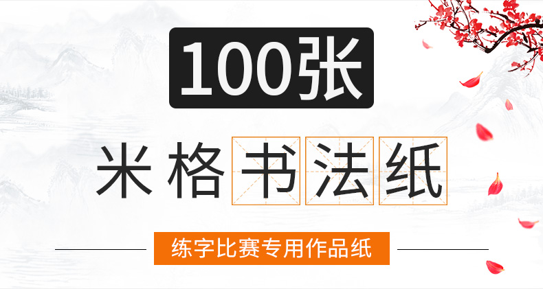 100张米字格硬笔书法作品纸a4比赛专用纸小学生铅笔钢笔练字纸中国风复古五言七言写古诗词初学者练字专用纸