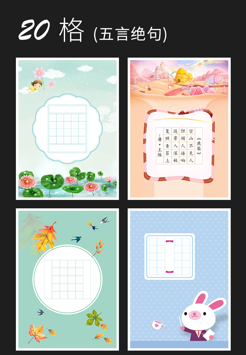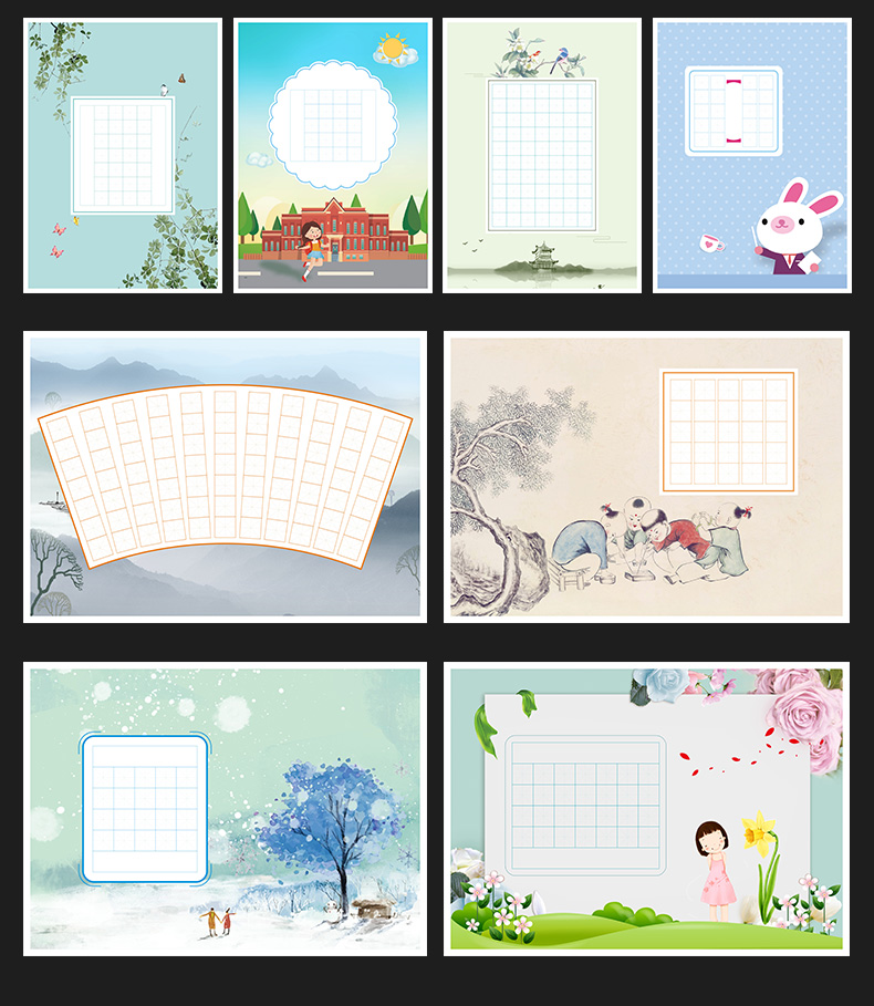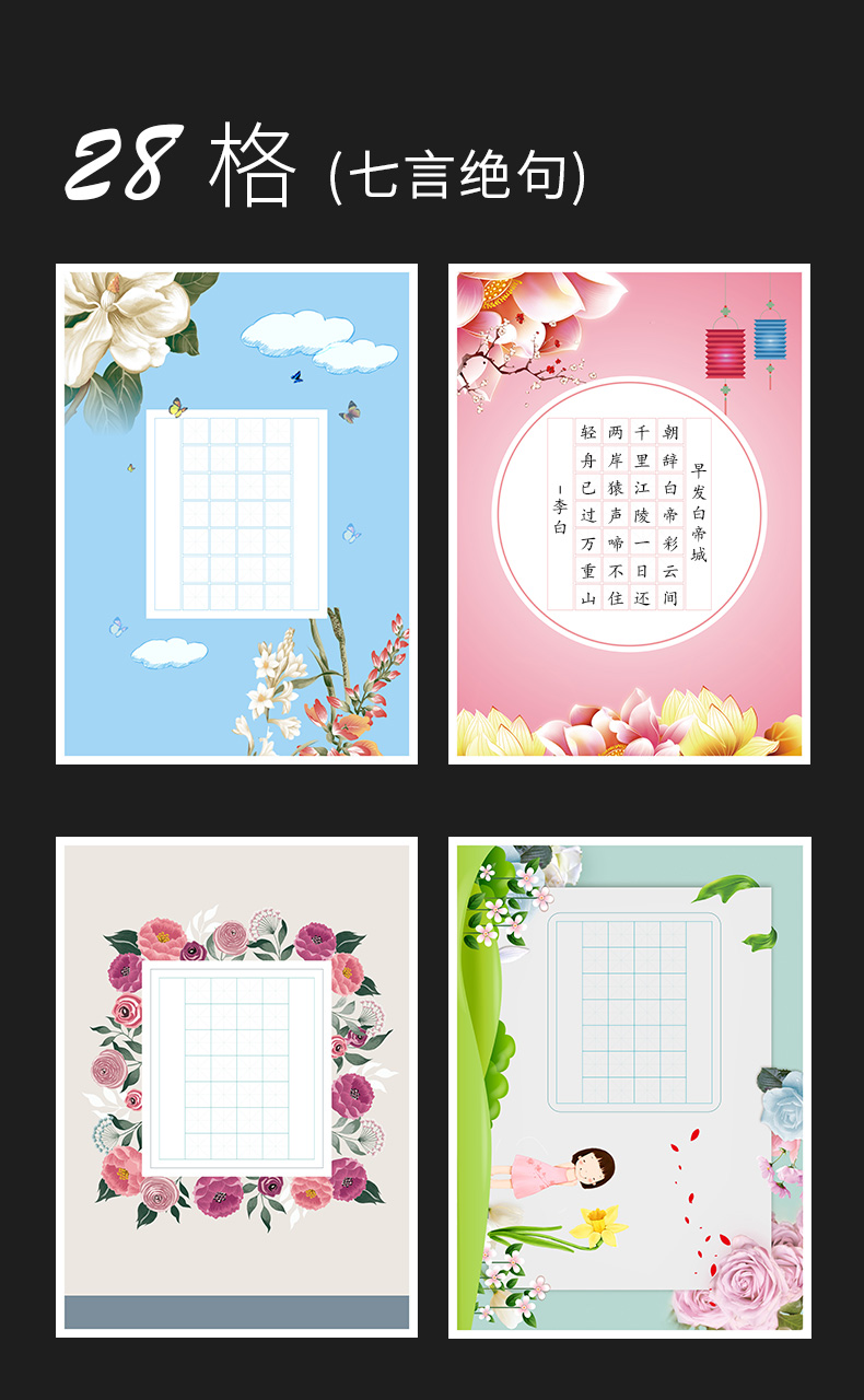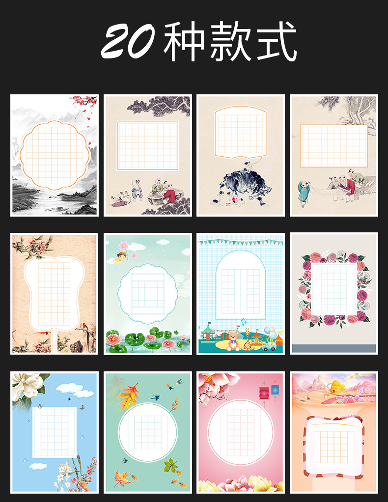 100张米字格硬笔书法作品纸a4比赛专用纸小学生铅笔钢笔练字纸中国风复古五言七言写古诗词初学者练字专用纸