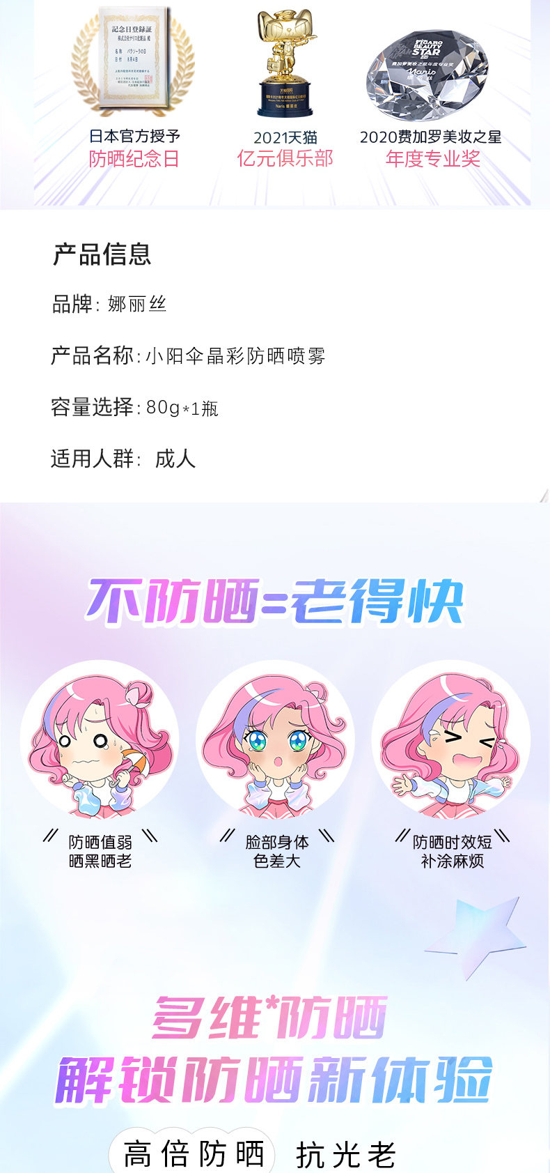 Naris娜丽丝小阳伞晶彩防晒喷雾80g(紫喷)日本进口