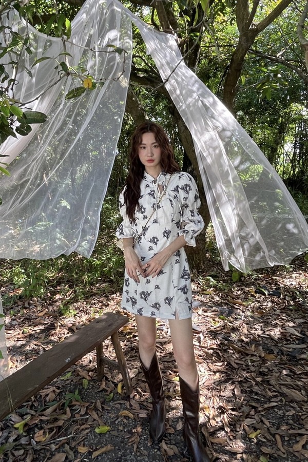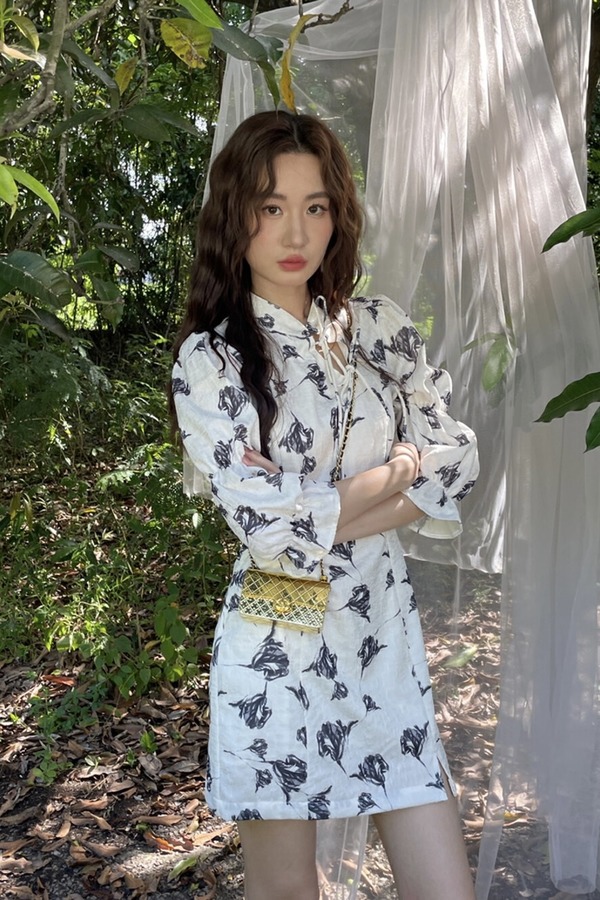 L.Fleuri 新中式立领系带碎花连衣裙 16946