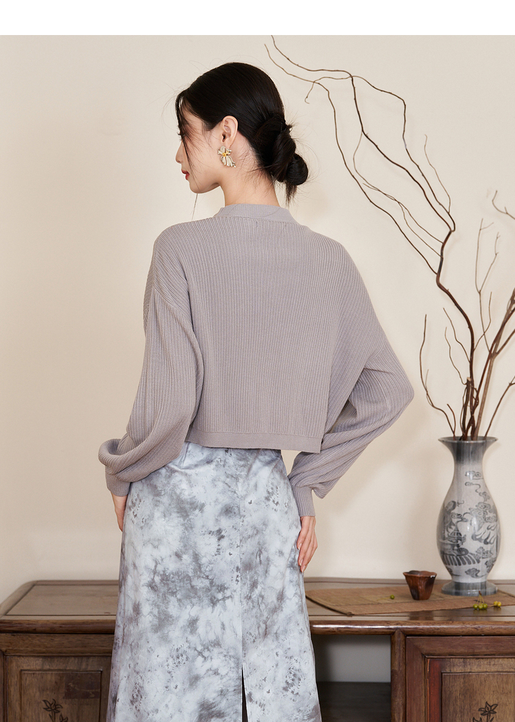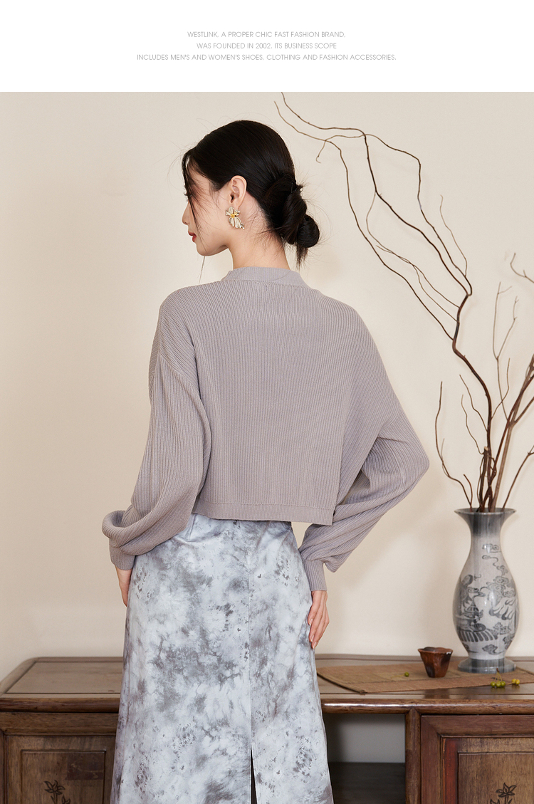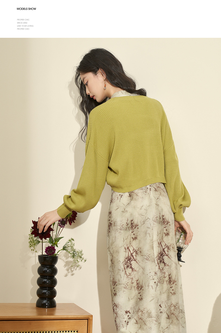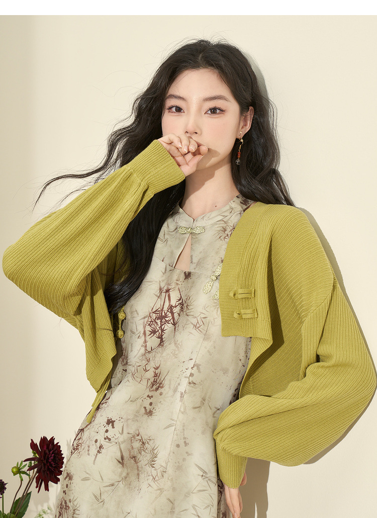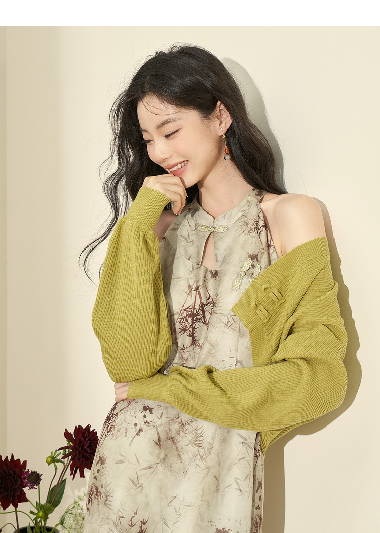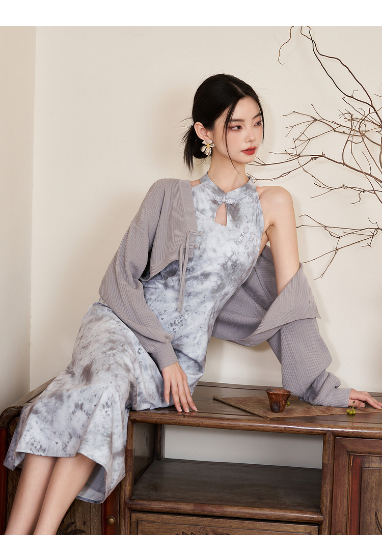 西遇韩系套装新款长袖针织开衫新中式复古旗袍连衣裙两件套V0038448/V0038447