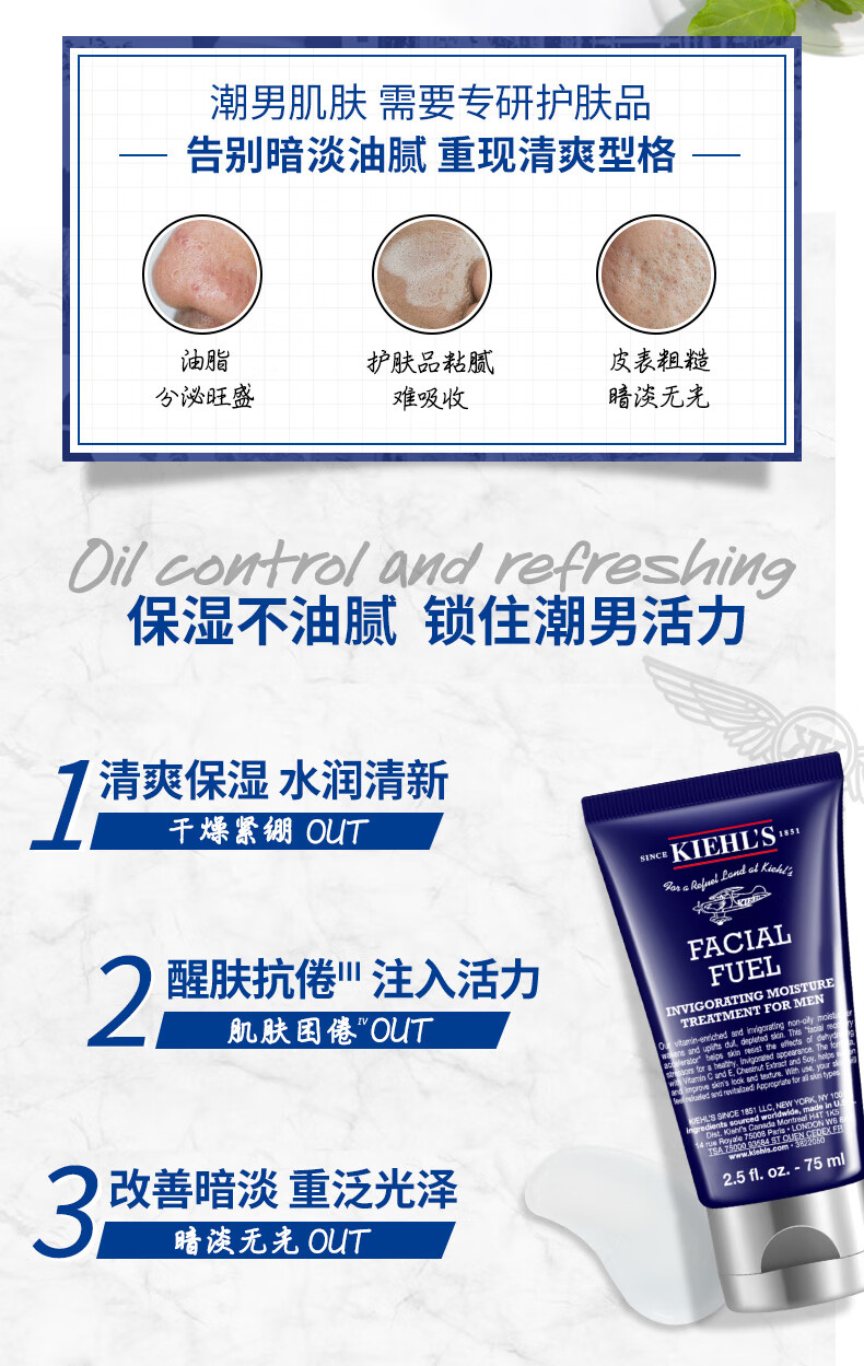 科颜氏 男士保湿乳液 补水保湿控油 送男友送老公生日礼物