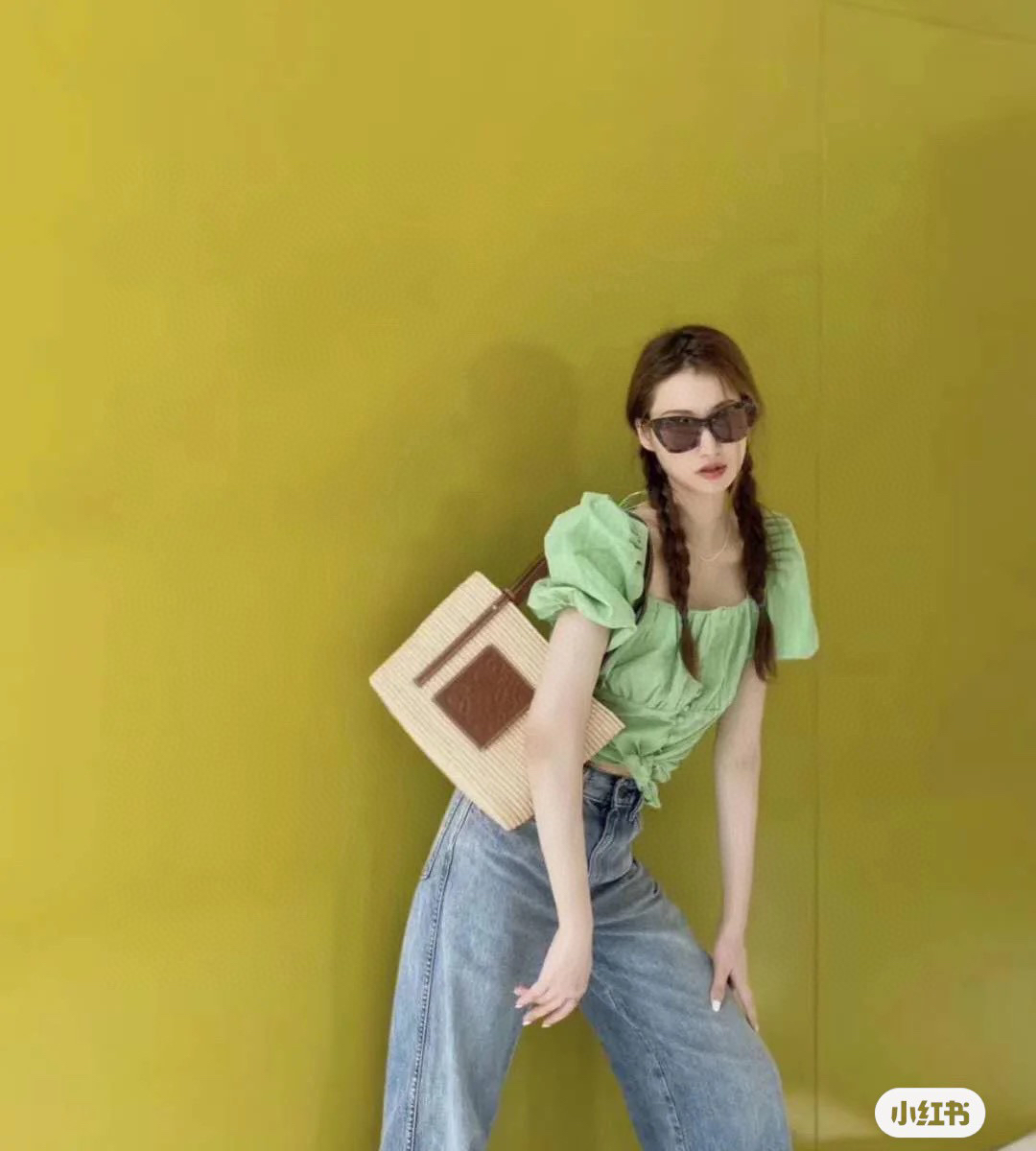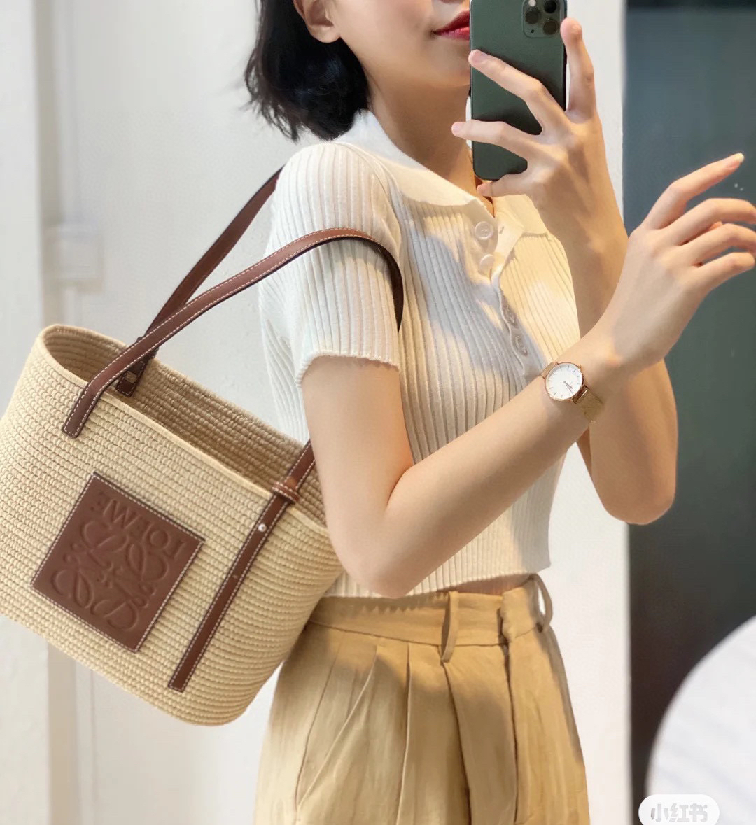 进口拉菲草、 全手工编织制作,精美的牛皮革带子,以及Anagram压纹牛皮革贴片。*肩背或手拎携带,拍照凹照型必备,超好看[勾引][勾引][勾引]型号:10112.