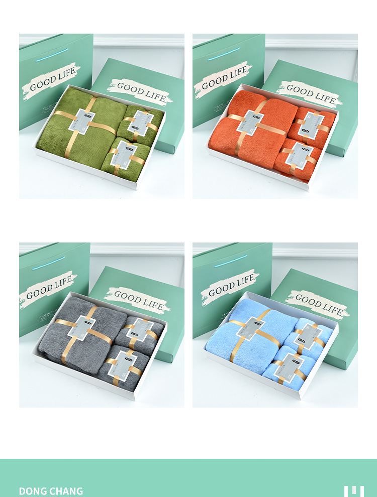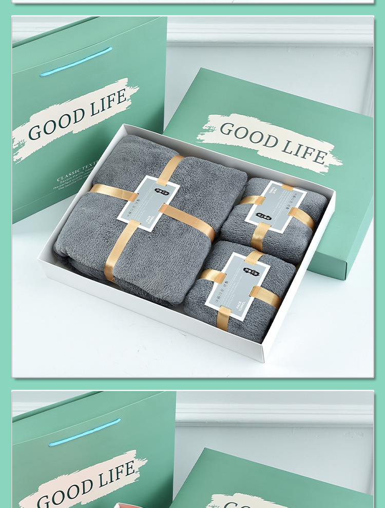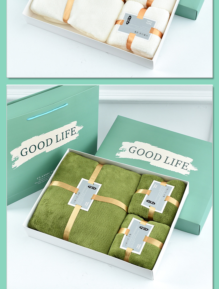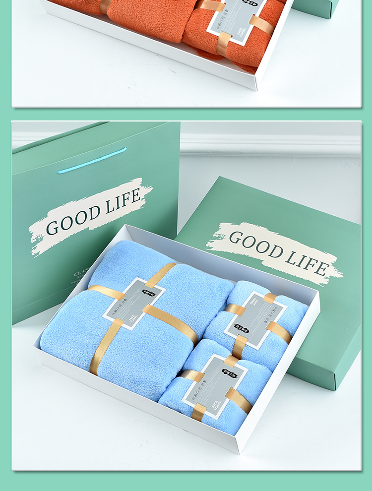 「3件套礼盒装!6色可选」珊瑚绒毛巾浴巾套装 公司员工福利礼盒活动居家布艺可定logo