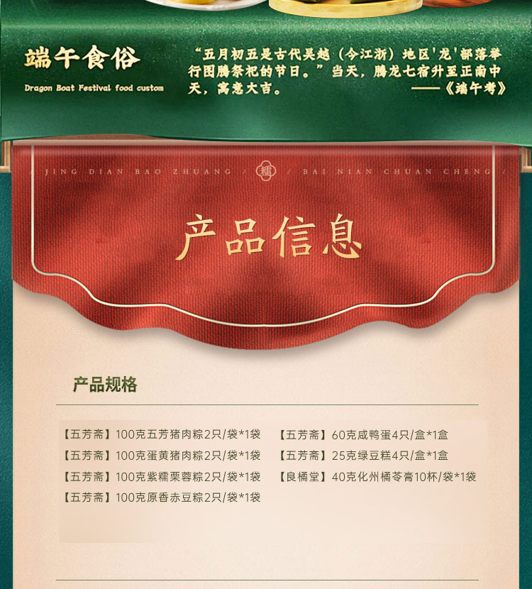 五芳斋-龙粽登场 (8 粽+咸蛋+糕点+橘苓膏)1540g【端午】LP