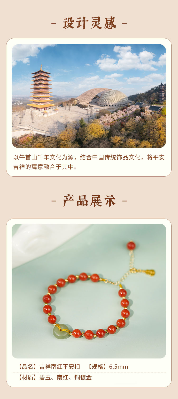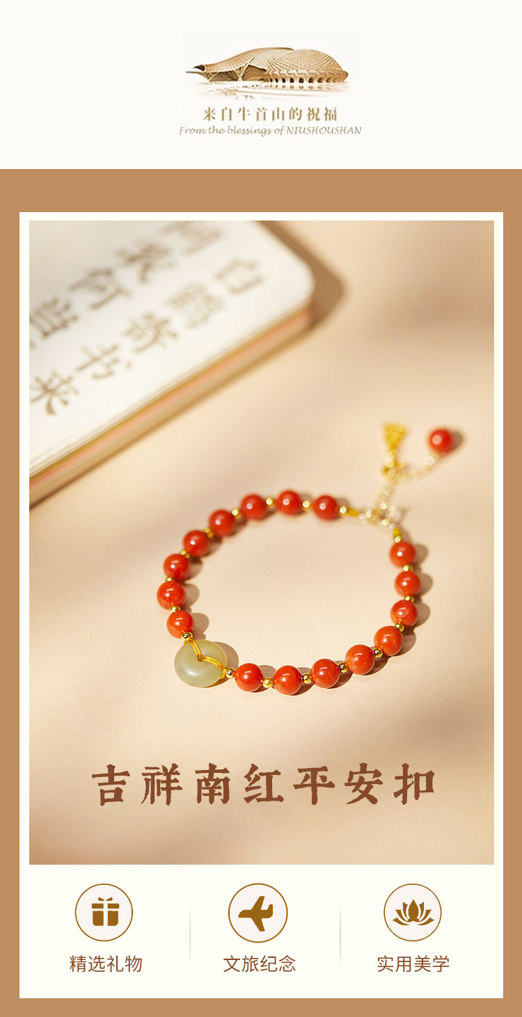 牛首山文创吉祥平安扣南红手串南京纪念品小众高级感手链节日礼物