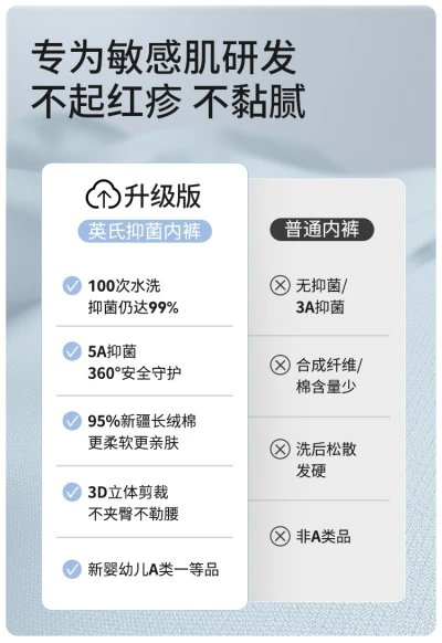 ✅ 7A抑菌内档,水洗150次依然有效抑菌,天然抑菌成分深入纤维,筑牢健康防线