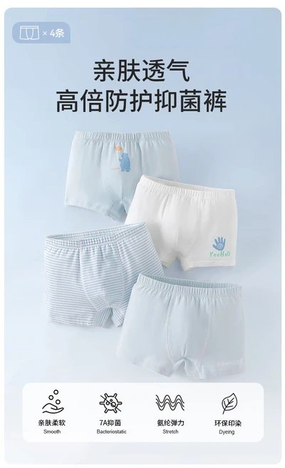 【品牌直发】英氏【5A&7A抑菌4条装】男女童纯棉平角内裤,好面料看得见,甄选新疆长绒棉,柔软舒适~