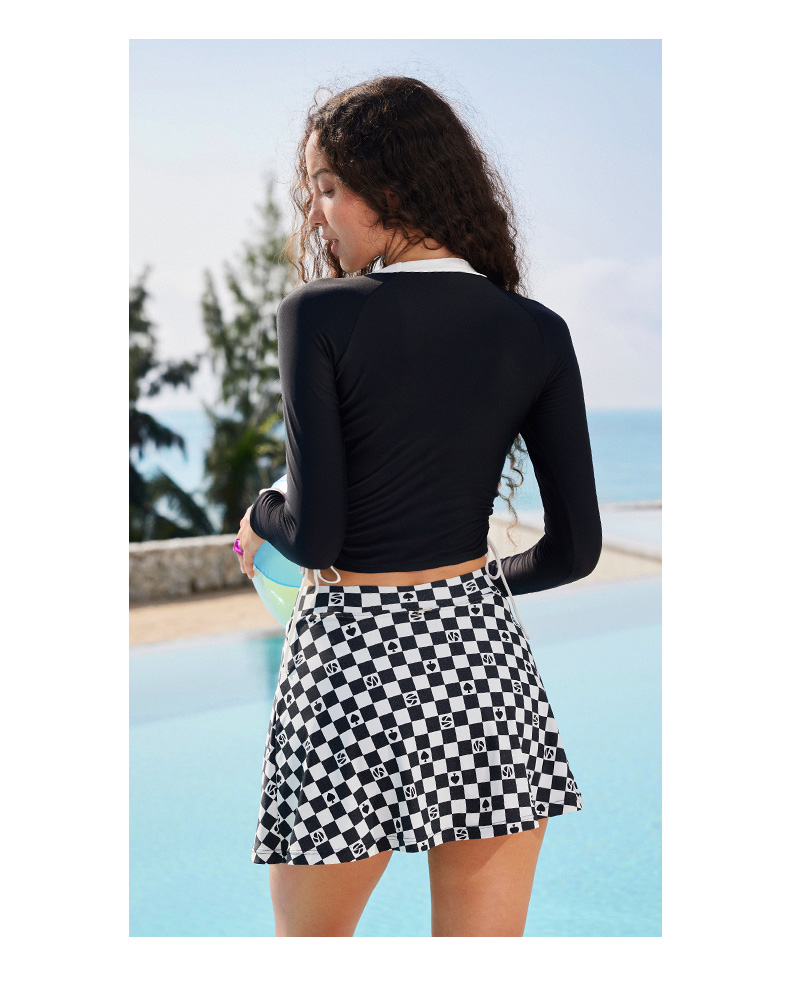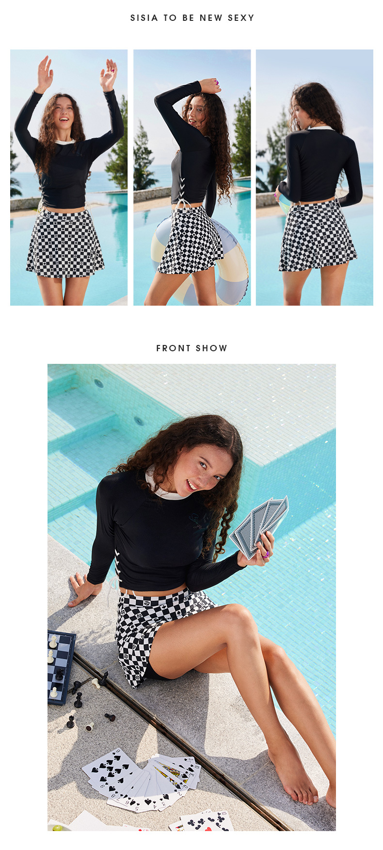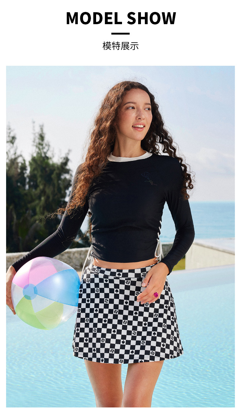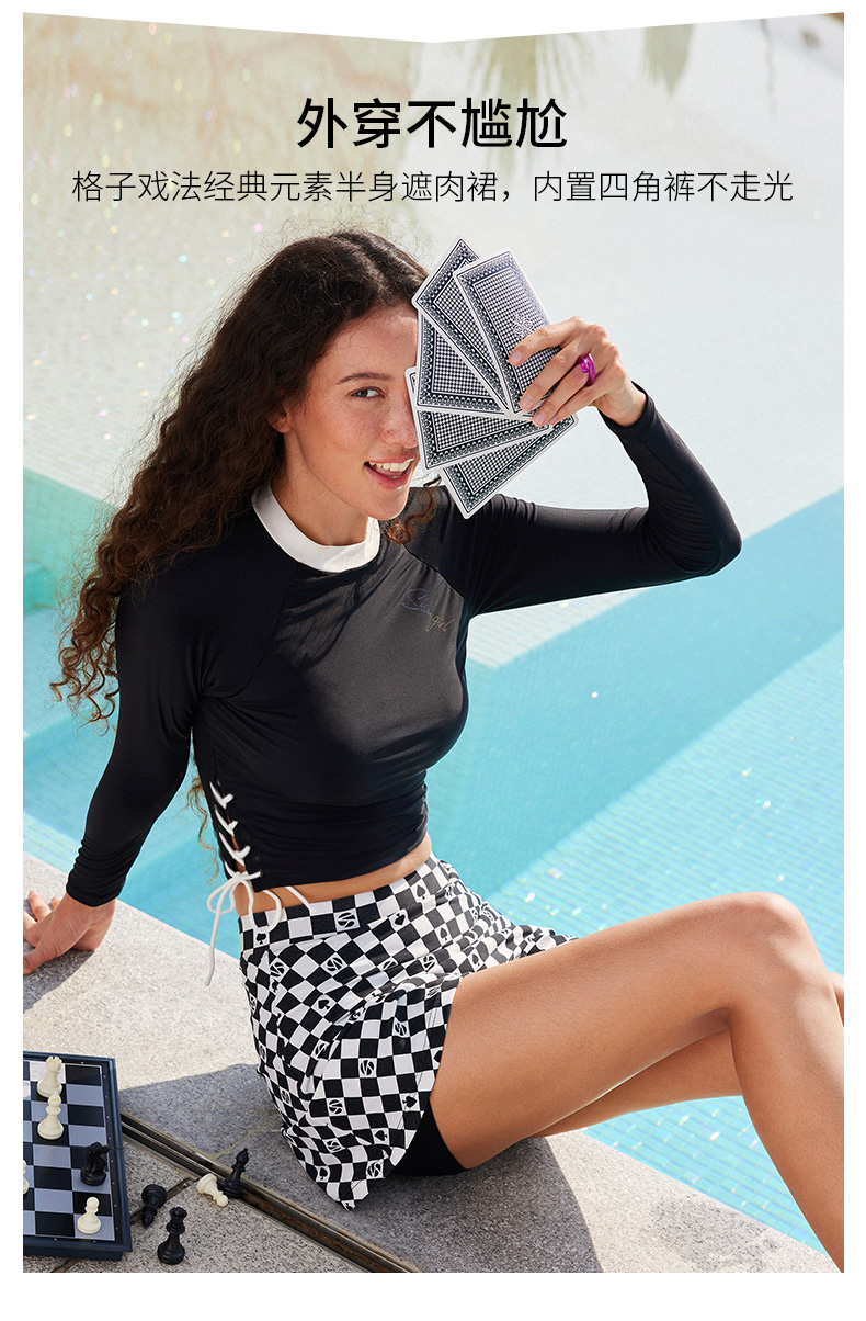 sisia2023新款泳衣女海岛度假长袖防晒时尚性感温泉裙式分体泳衣