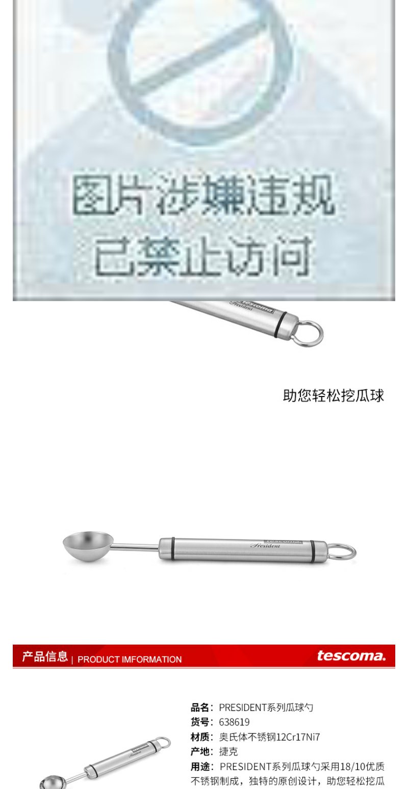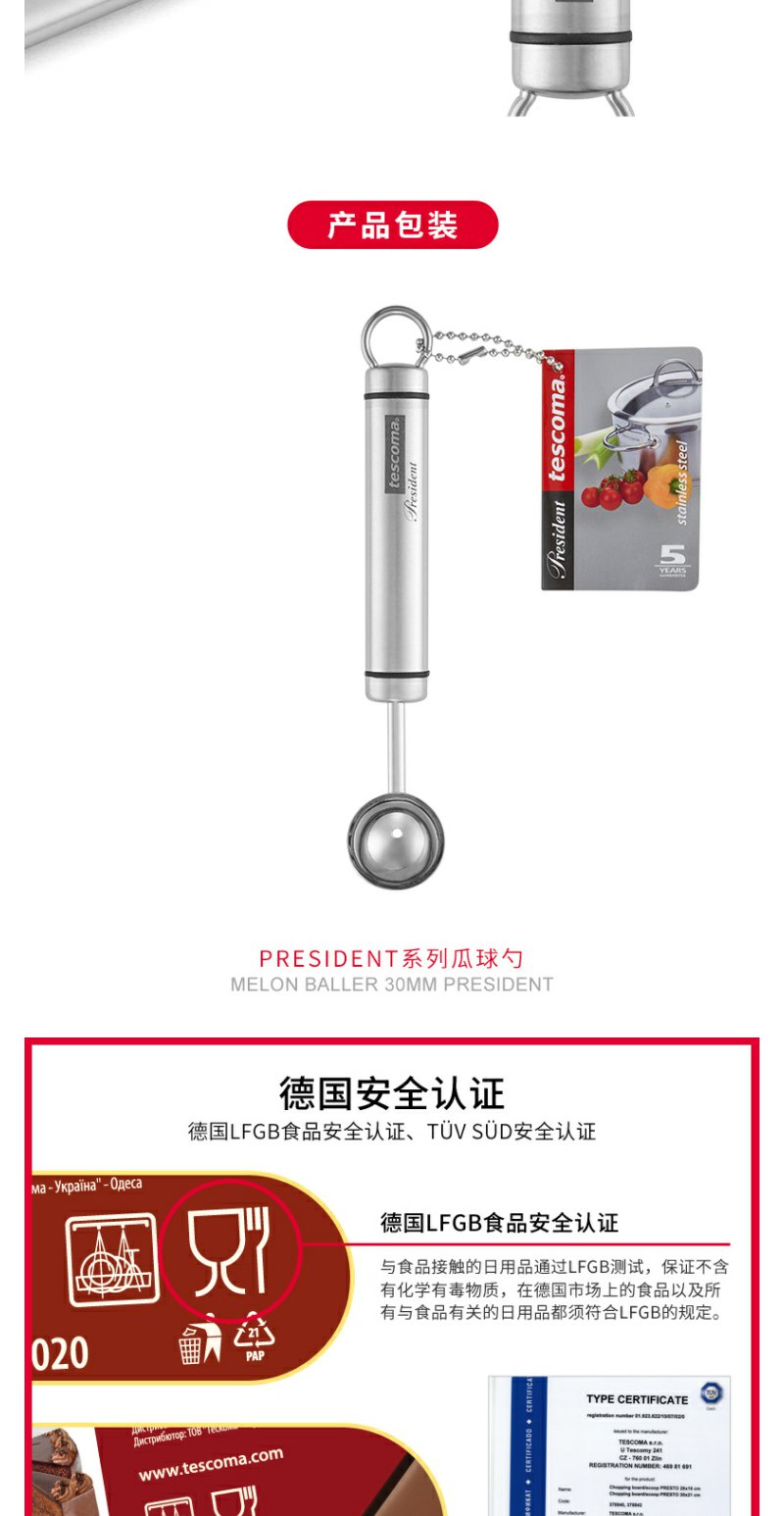 捷克进口/tescoma 水果挖球器 不锈钢西瓜挖球勺冰激凌勺花样挖果肉器