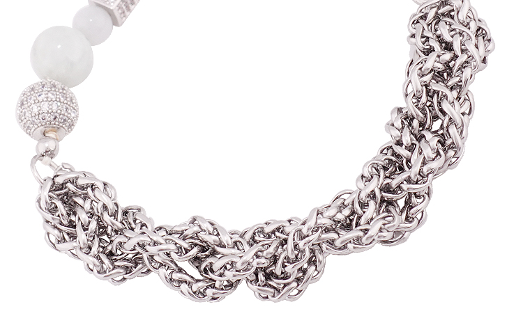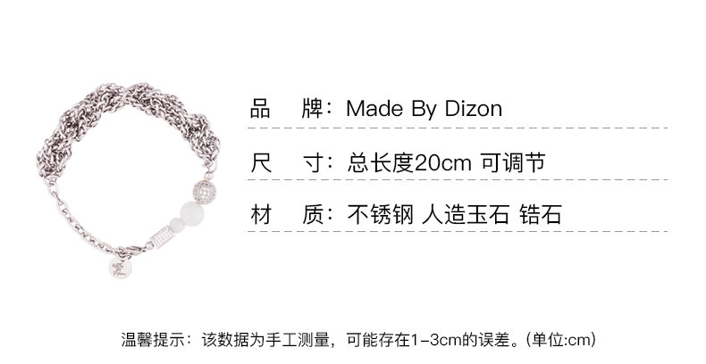 MADE BY DIZON 国风人造玉石锆石满钻手链 男女款 手工钢链编织链