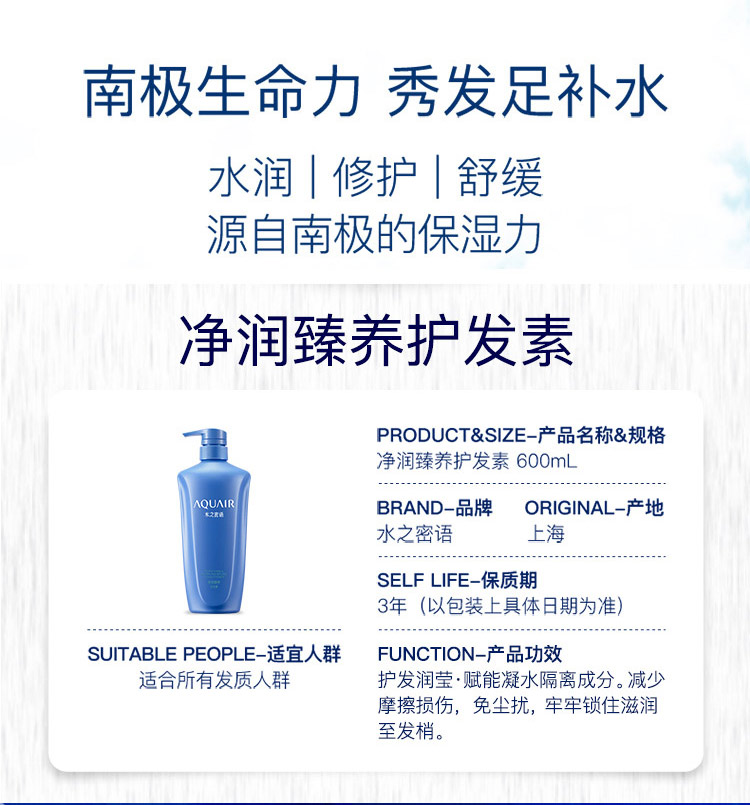 【自营】 资生堂 水之密语净润臻养护发素600ml