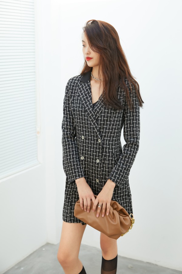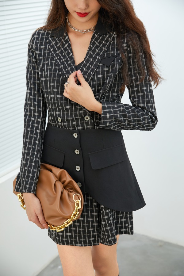ANSUABEL 双排扣收腰西装连衣裙腰封装饰两件套 13570