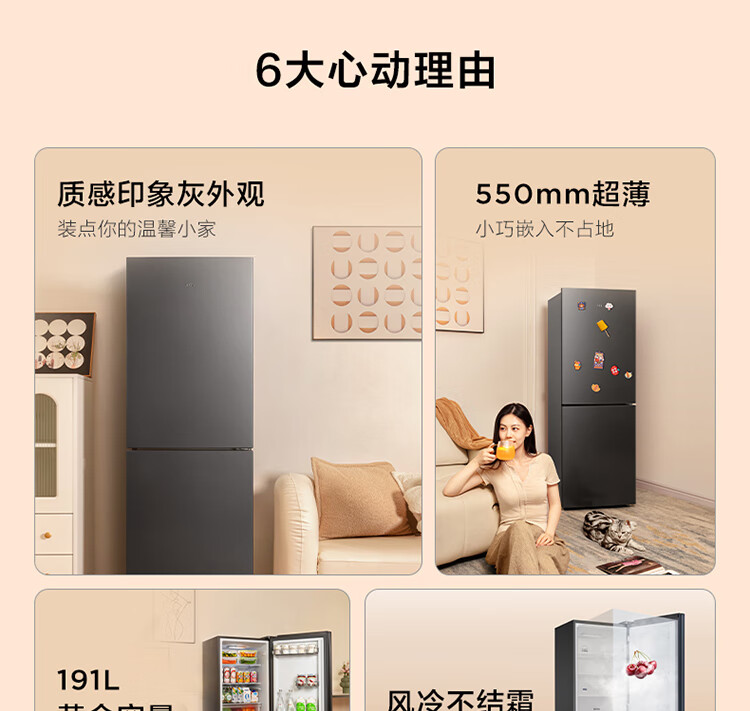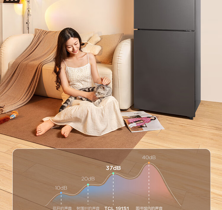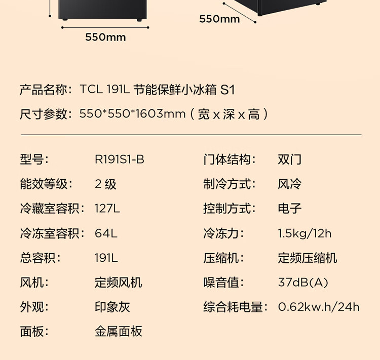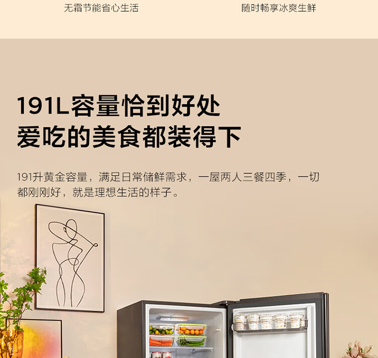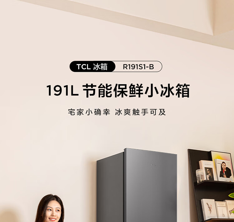 TCL191升双门养鲜冰箱节能环保风冷无霜冰箱 小型冰箱 迷你电冰箱 便捷电子温控冰箱 R191S1-B 二级能效