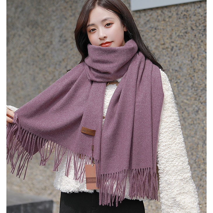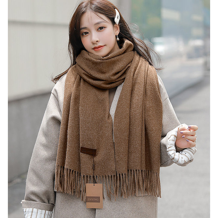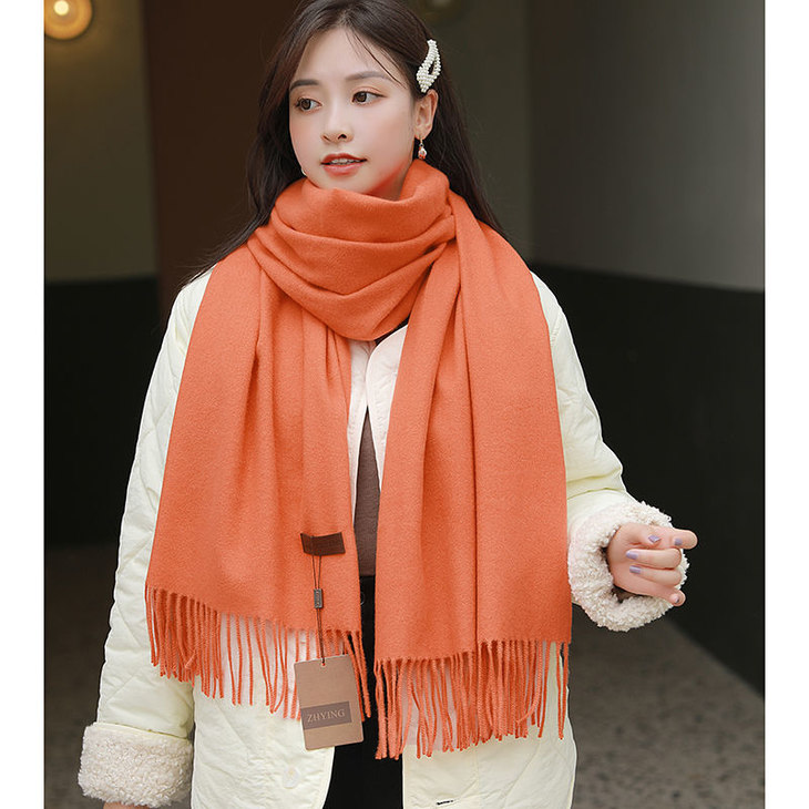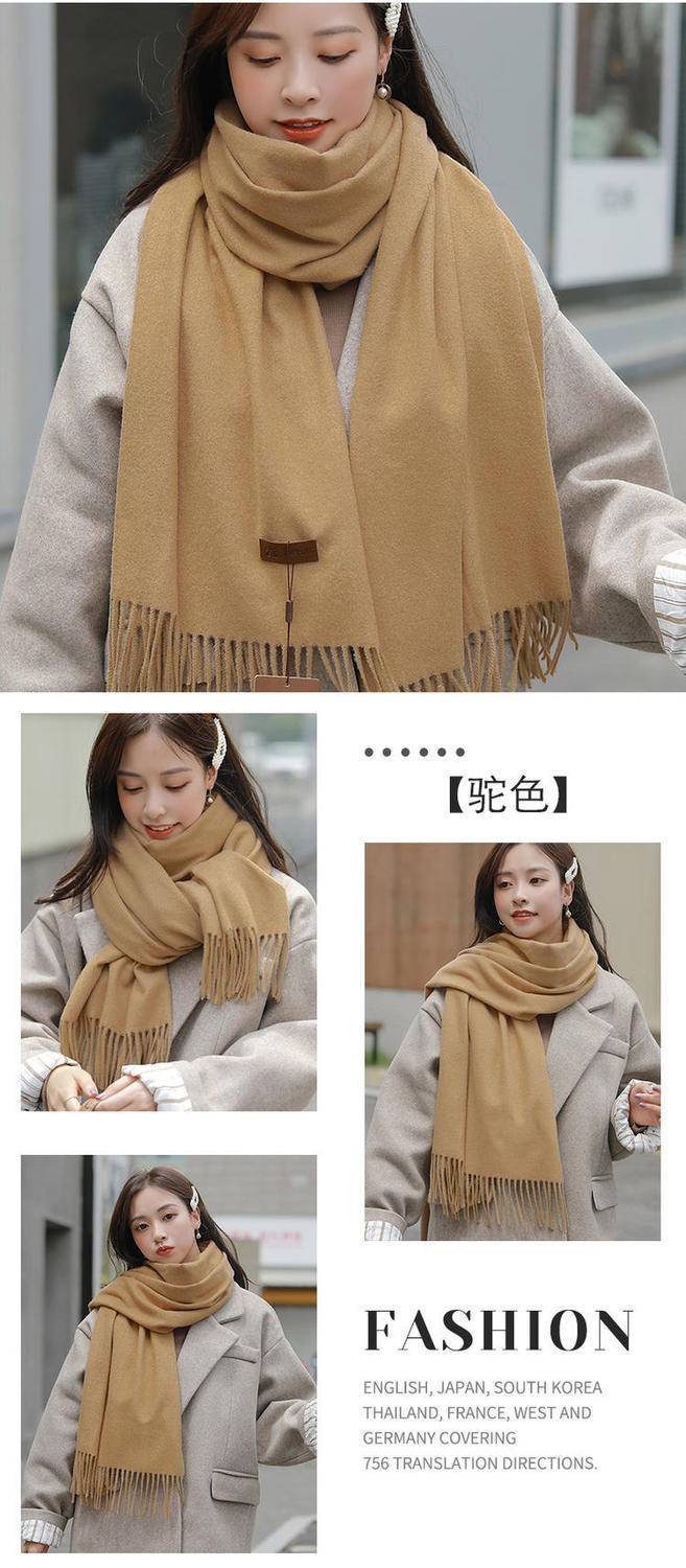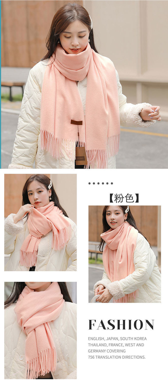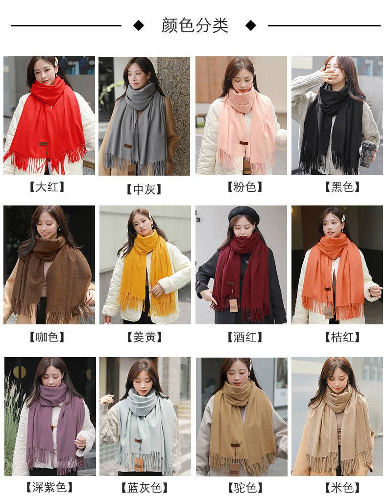 冬季新款仿羊纯色绒围巾