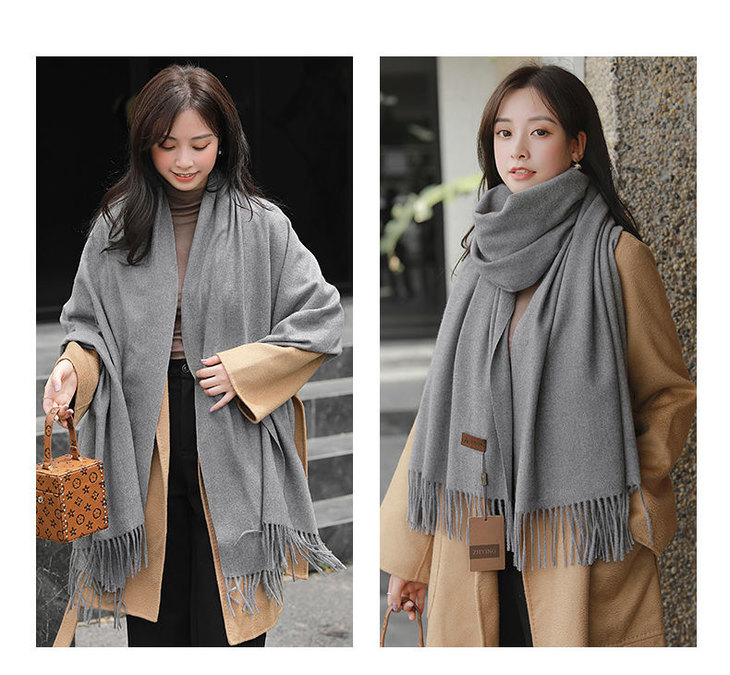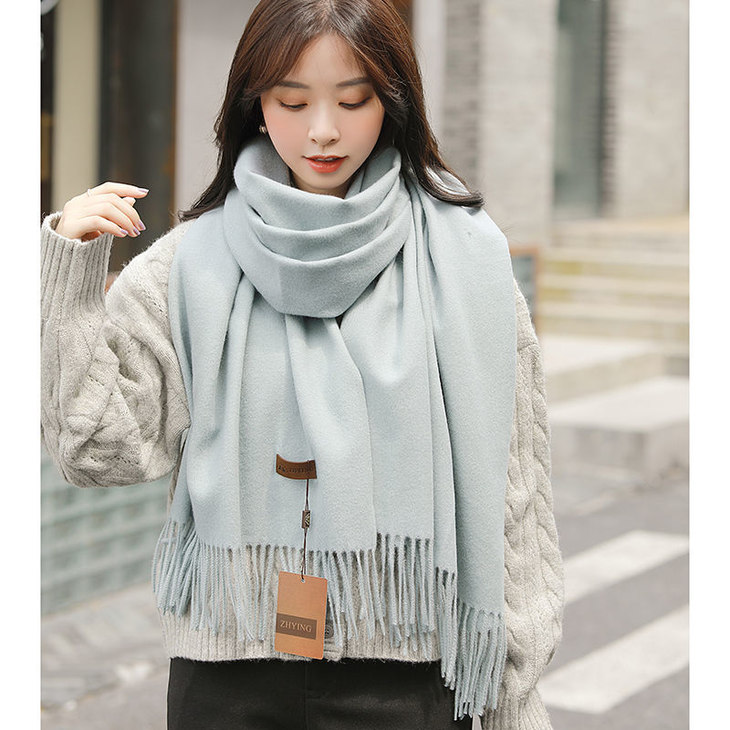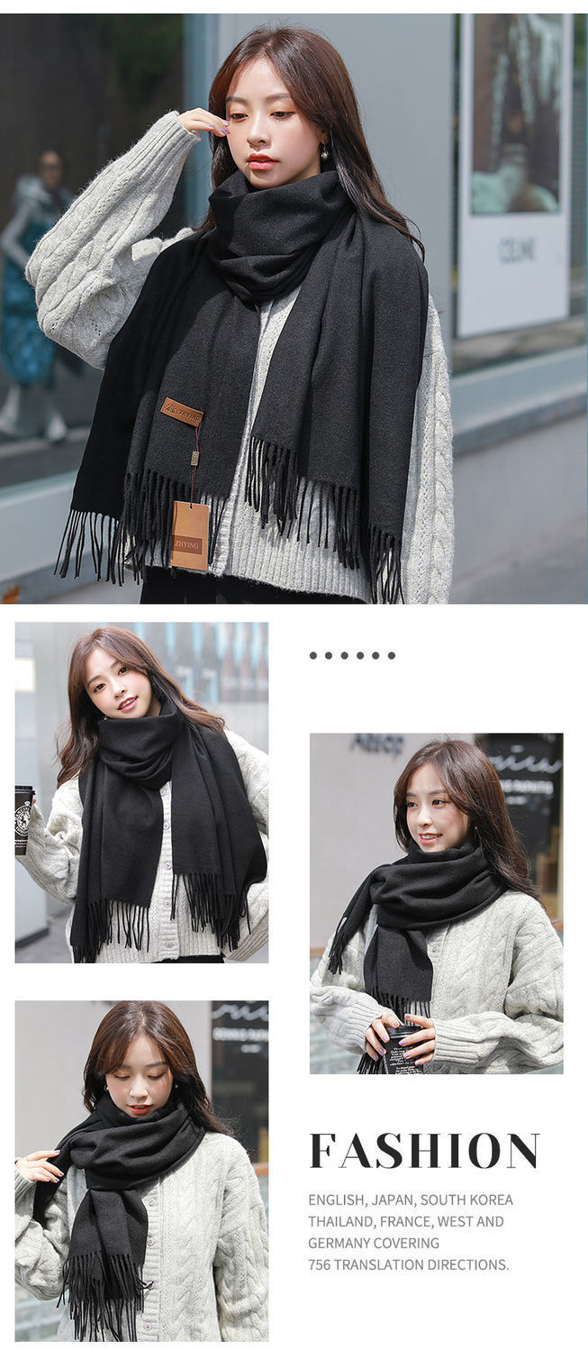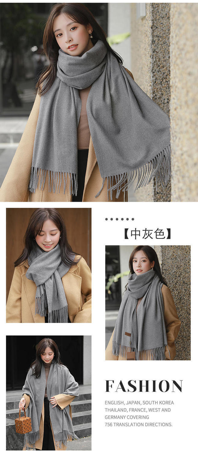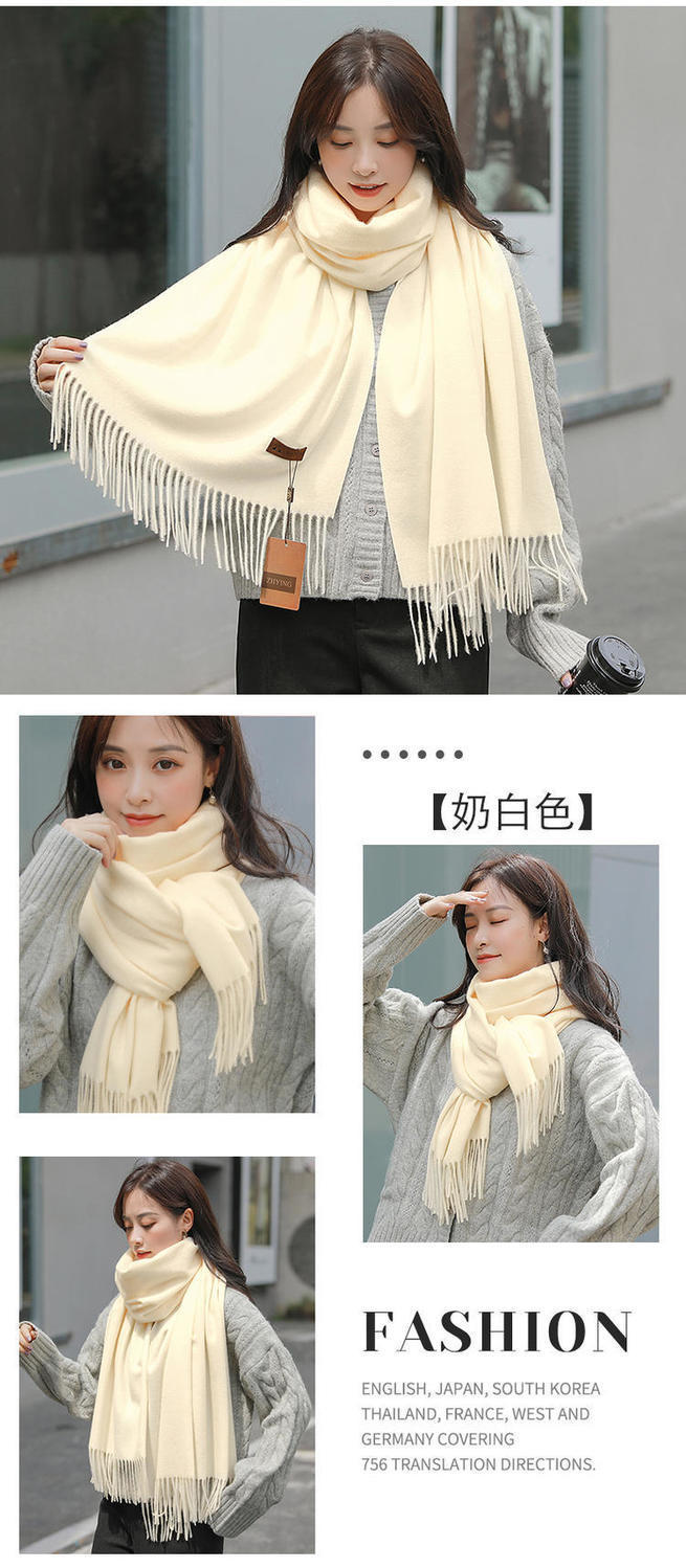 冬季新款仿羊纯色绒围巾