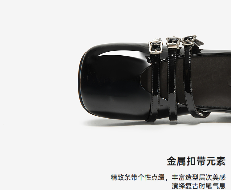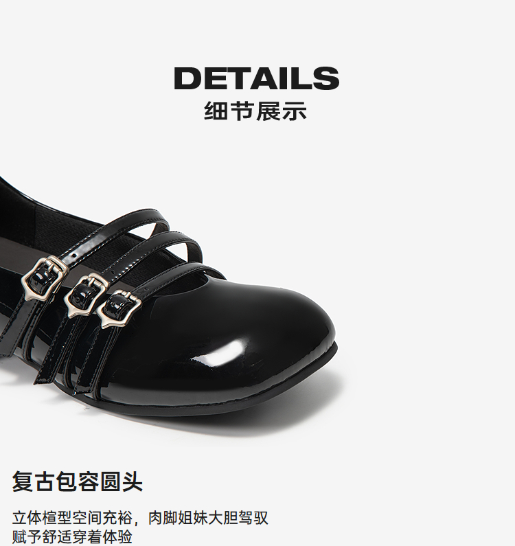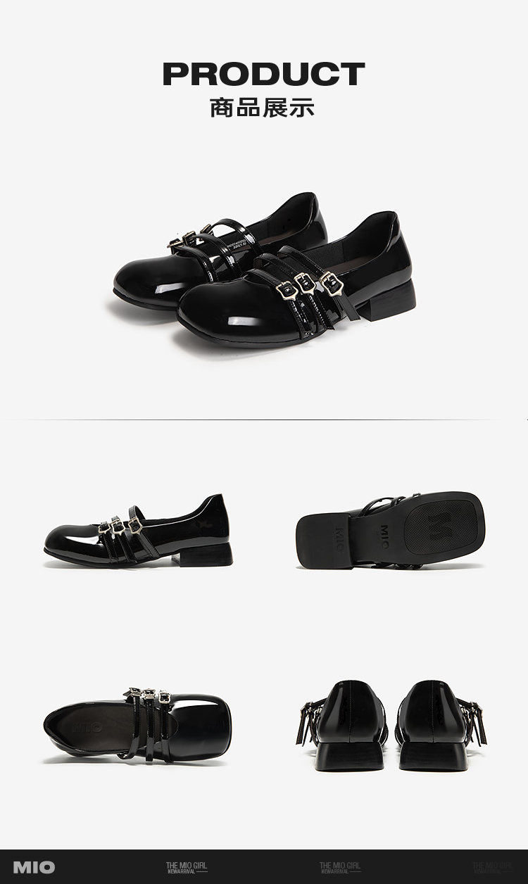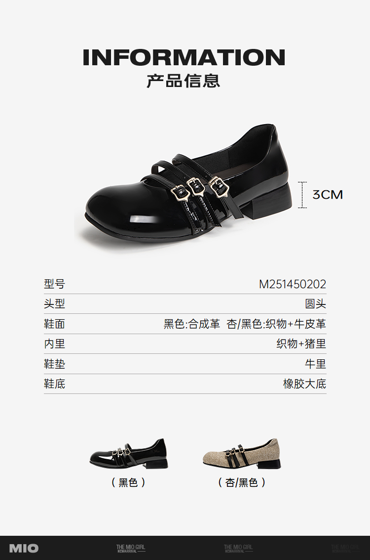 MIO米奥甜美可爱风玛丽珍鞋黑色搭扣设计粗跟单鞋M251450202