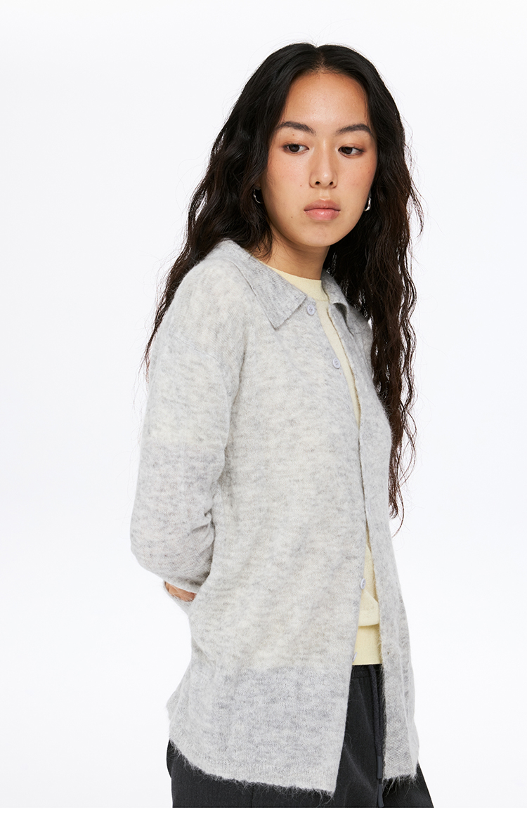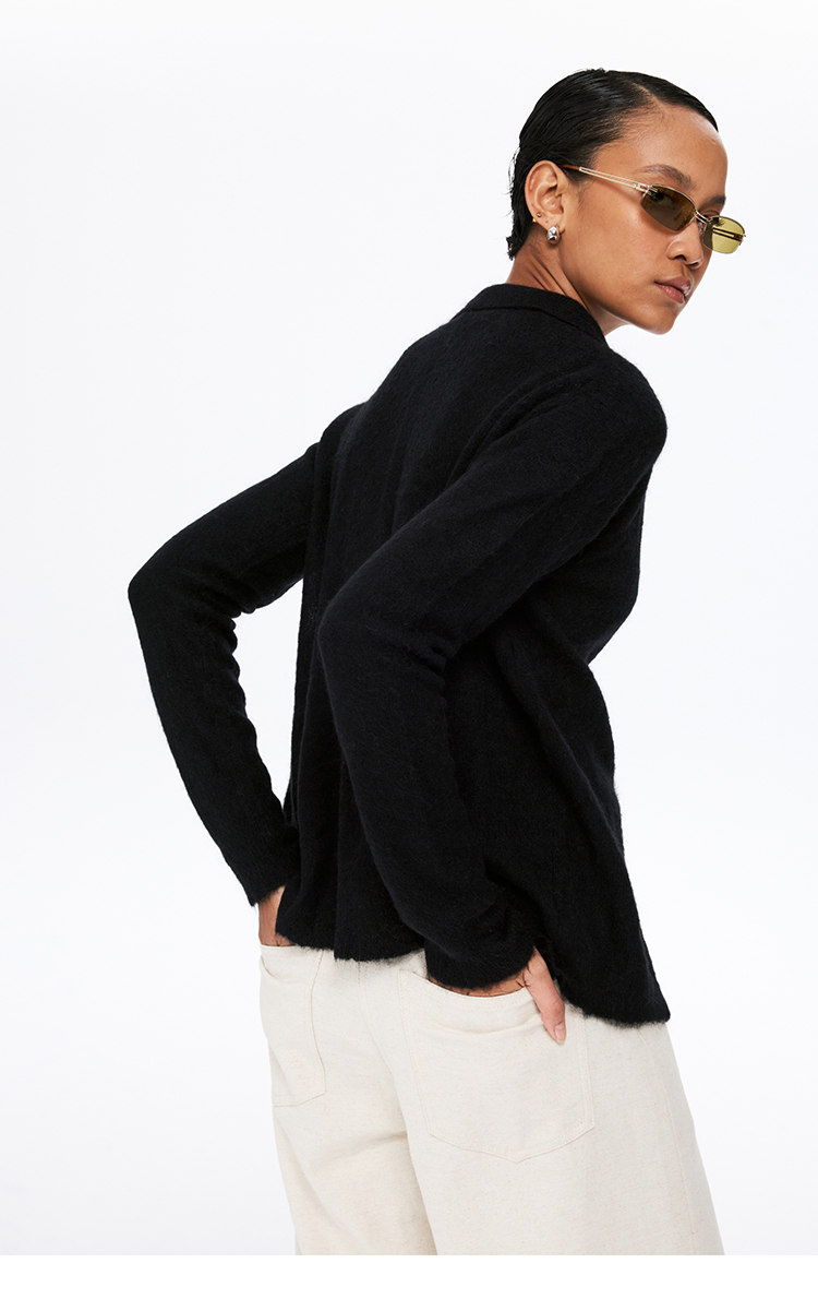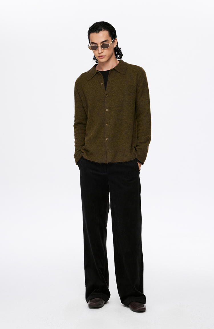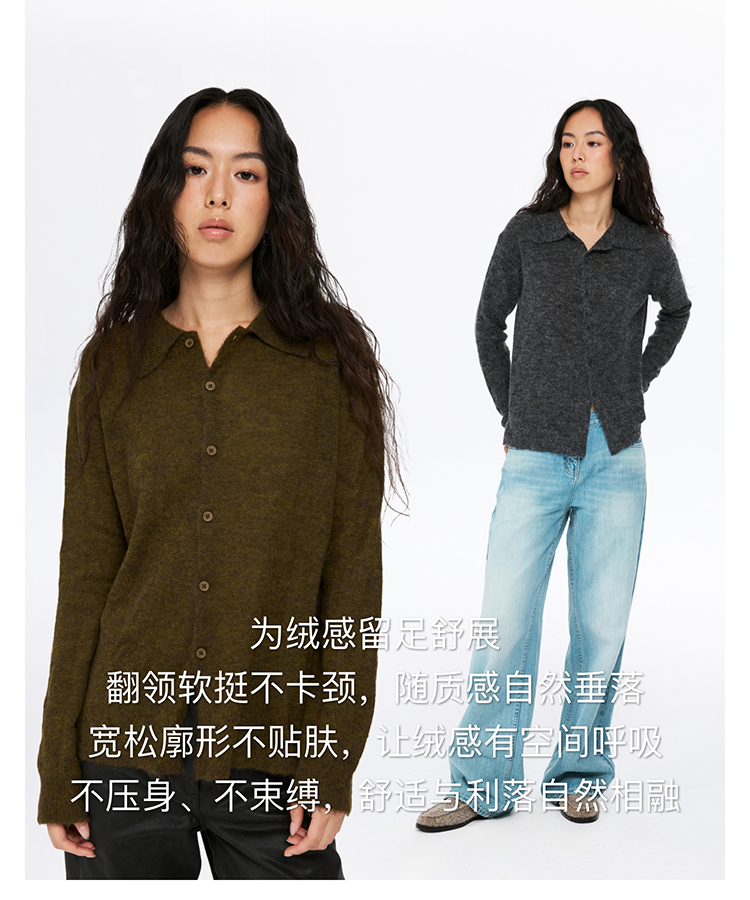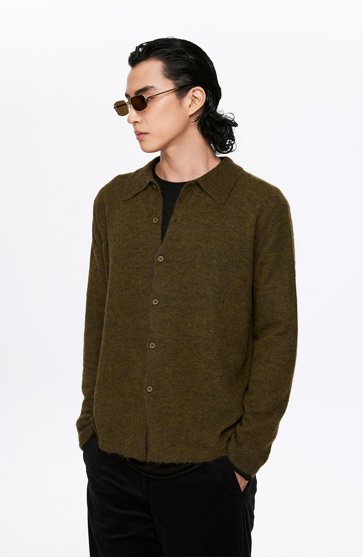 oneup羊驼毛翻领宽松毛衣开衫(男女同款)