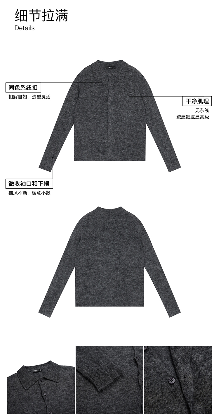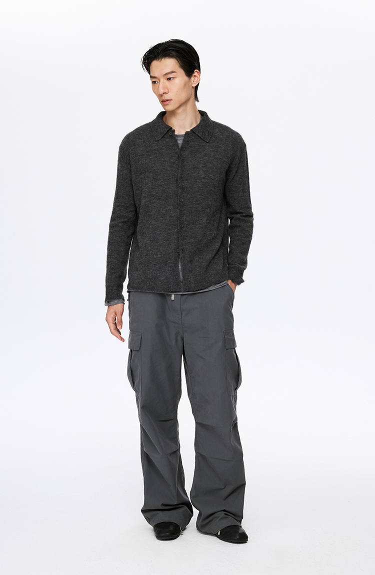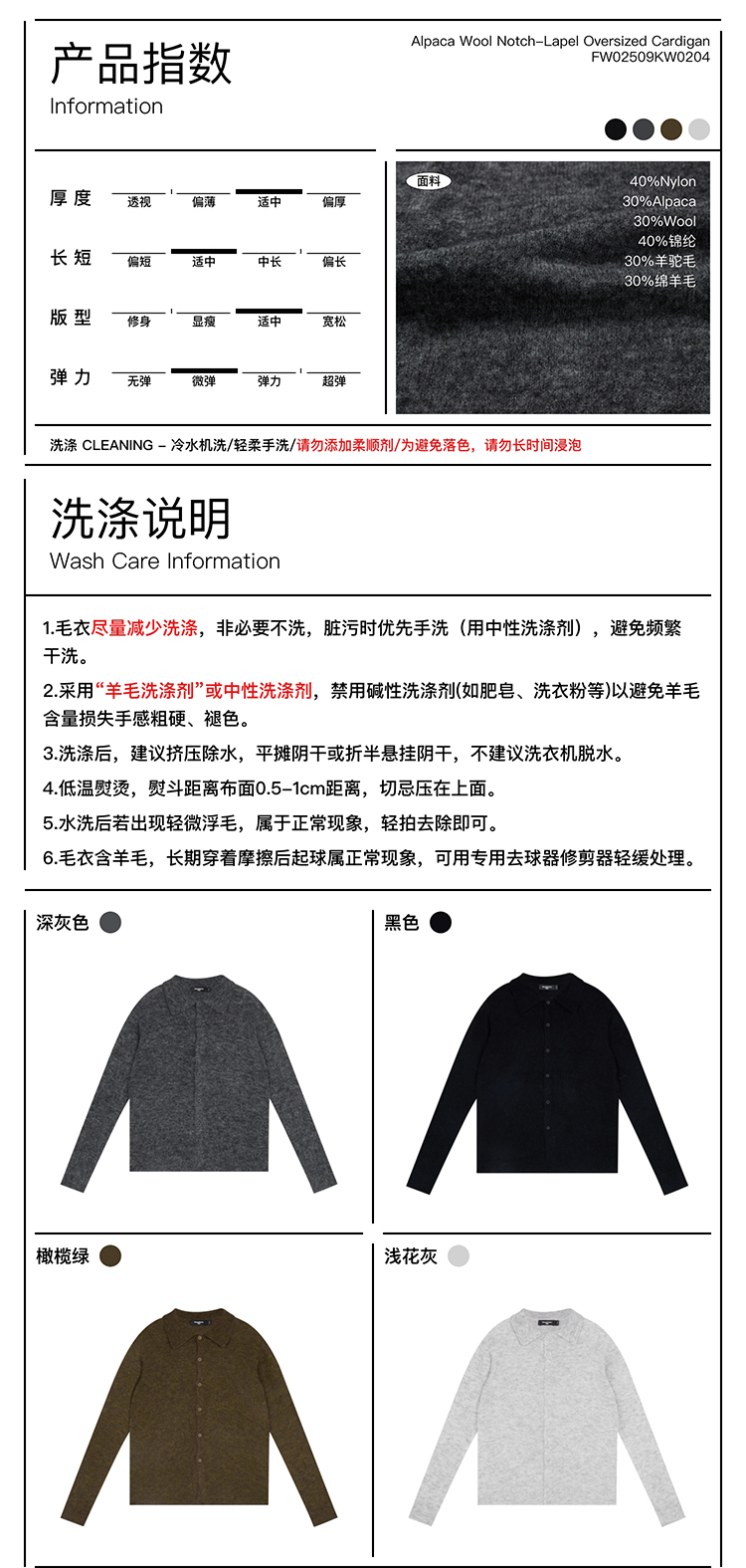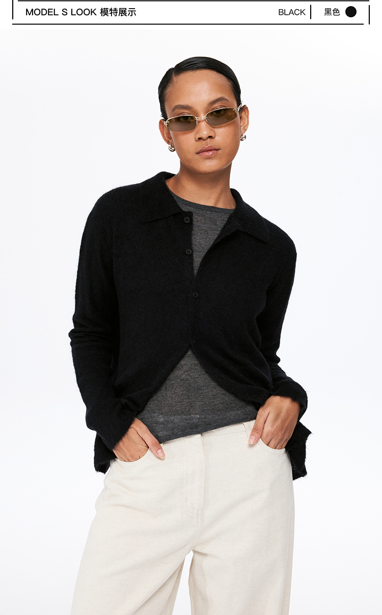 oneup羊驼毛翻领宽松毛衣开衫(男女同款)