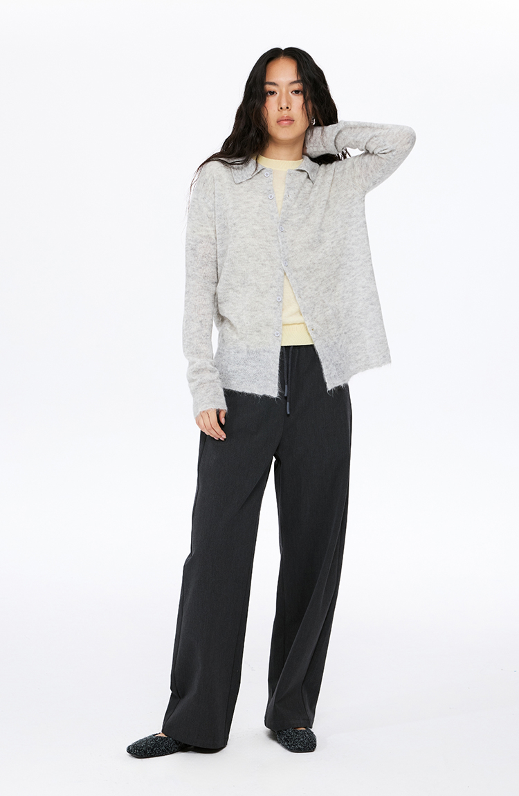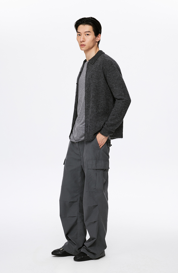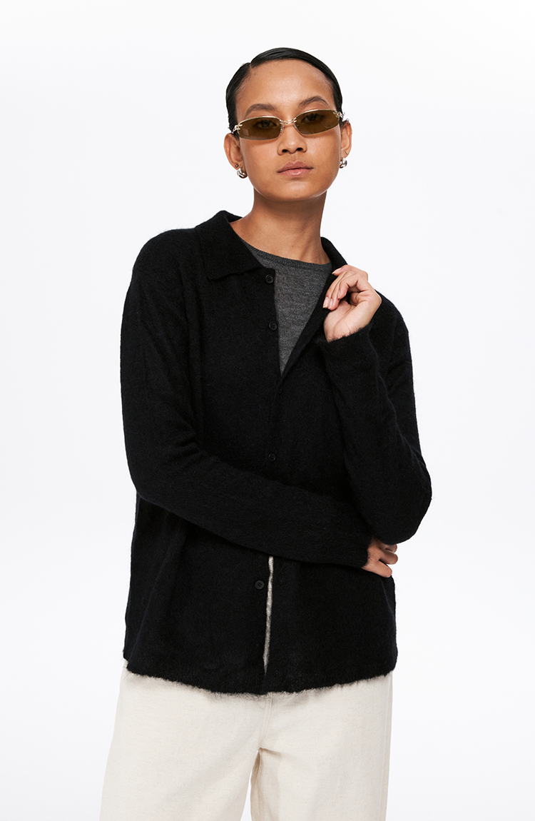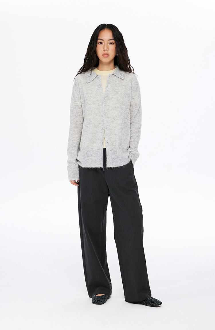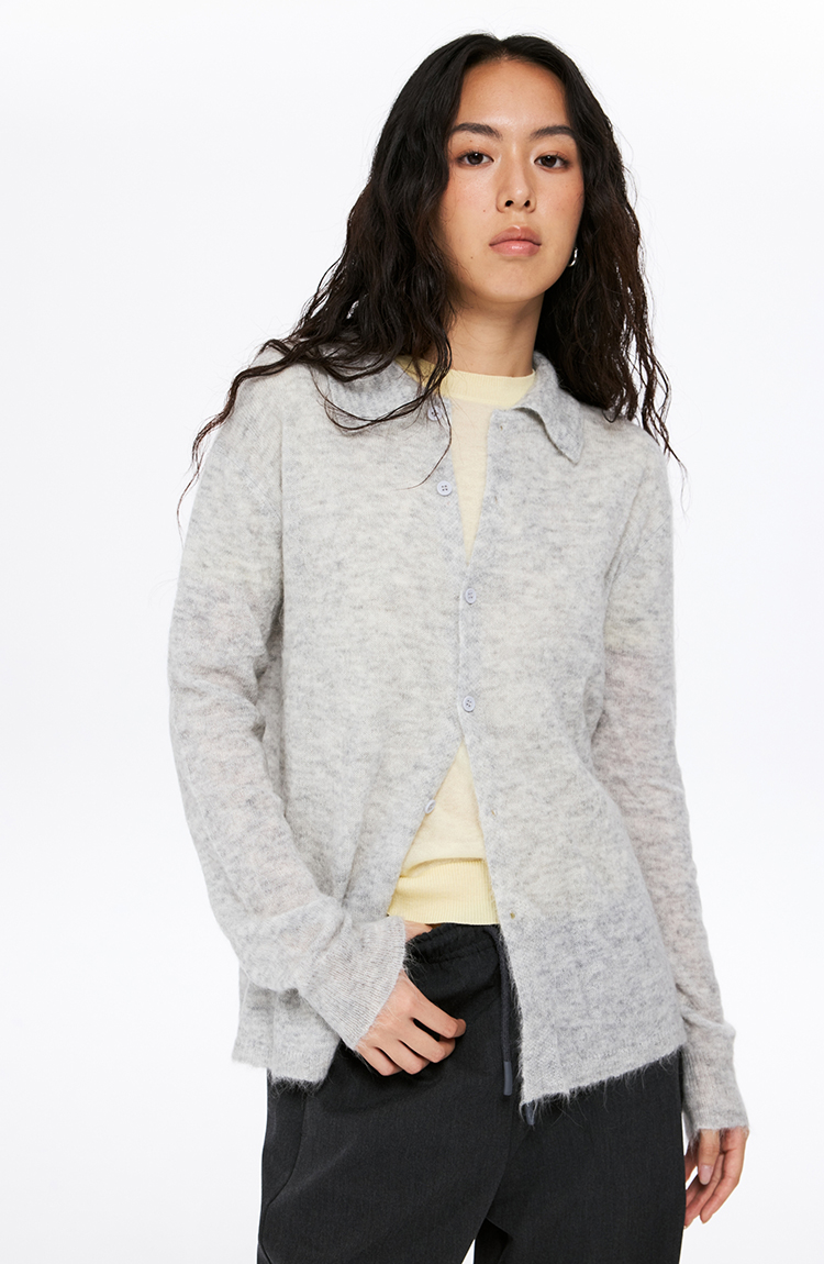 oneup羊驼毛翻领宽松毛衣开衫(男女同款)