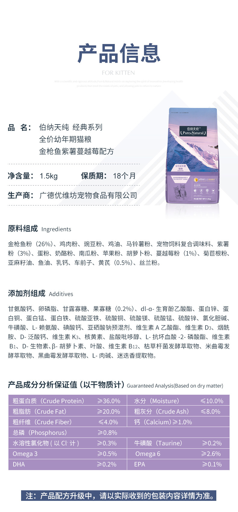 伯纳天纯幼猫猫粮1.5kg 经典系列