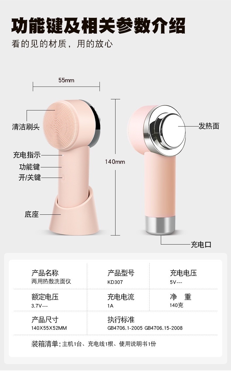 金稻洁面仪器清洁毛孔脸部按摩硅胶净肤电动家用充电式震动美容仪