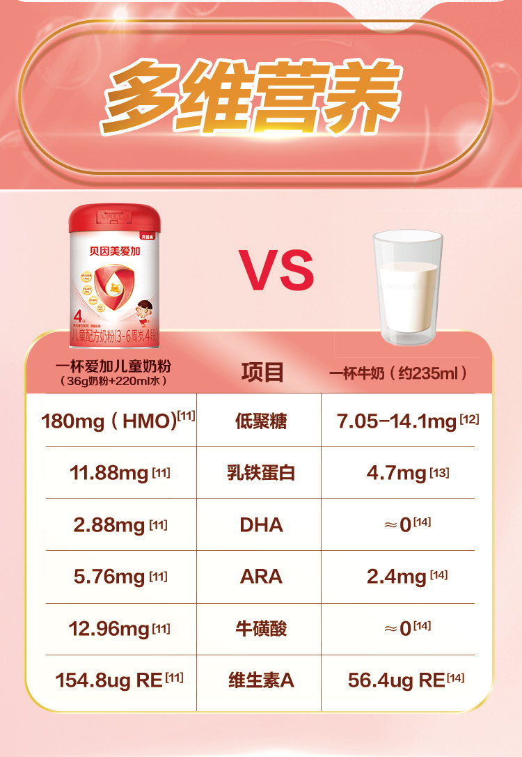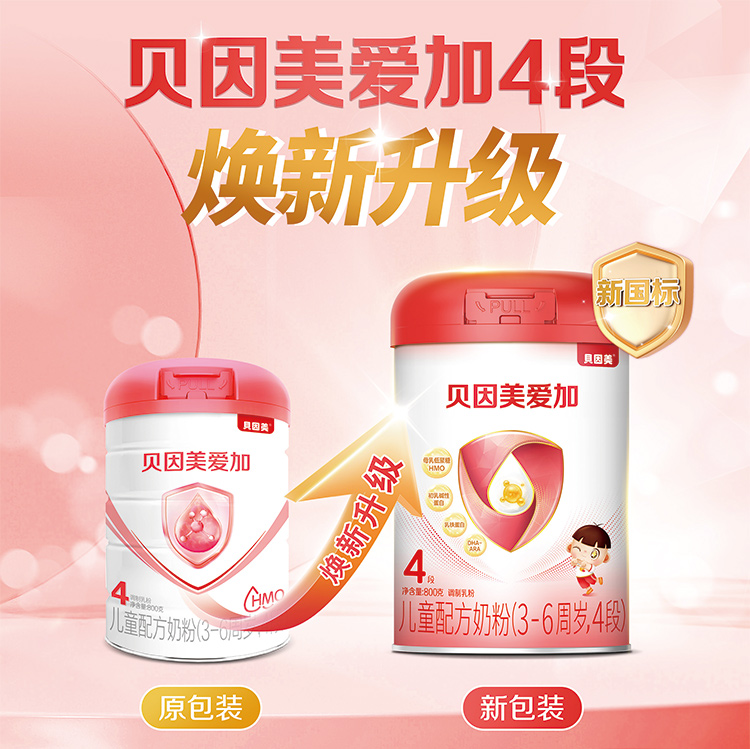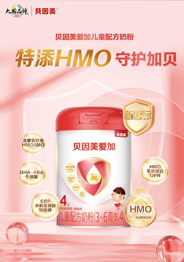 贝因美爱加儿童配方奶粉4段800g3-6周岁含HMOs赠随机果汁100g