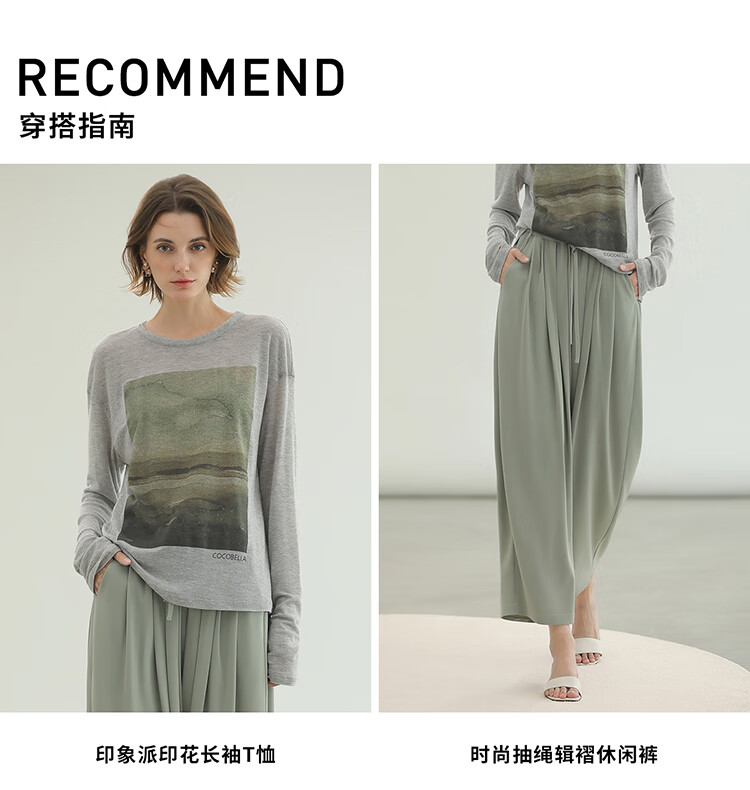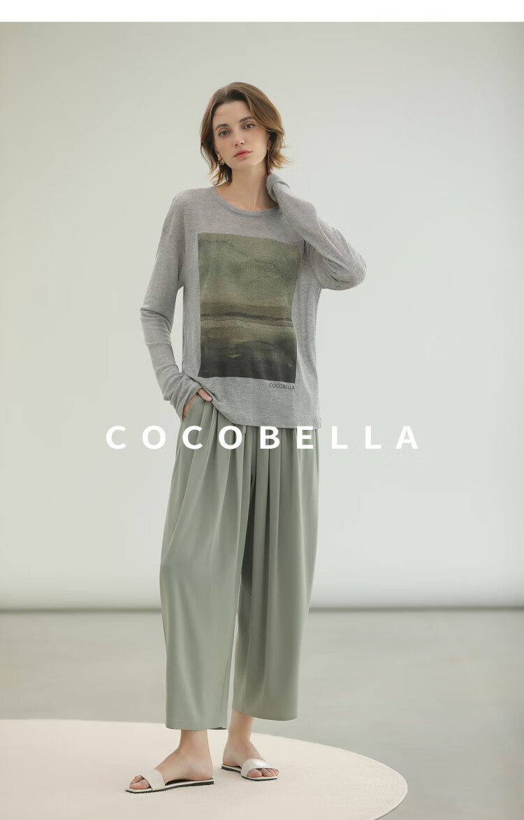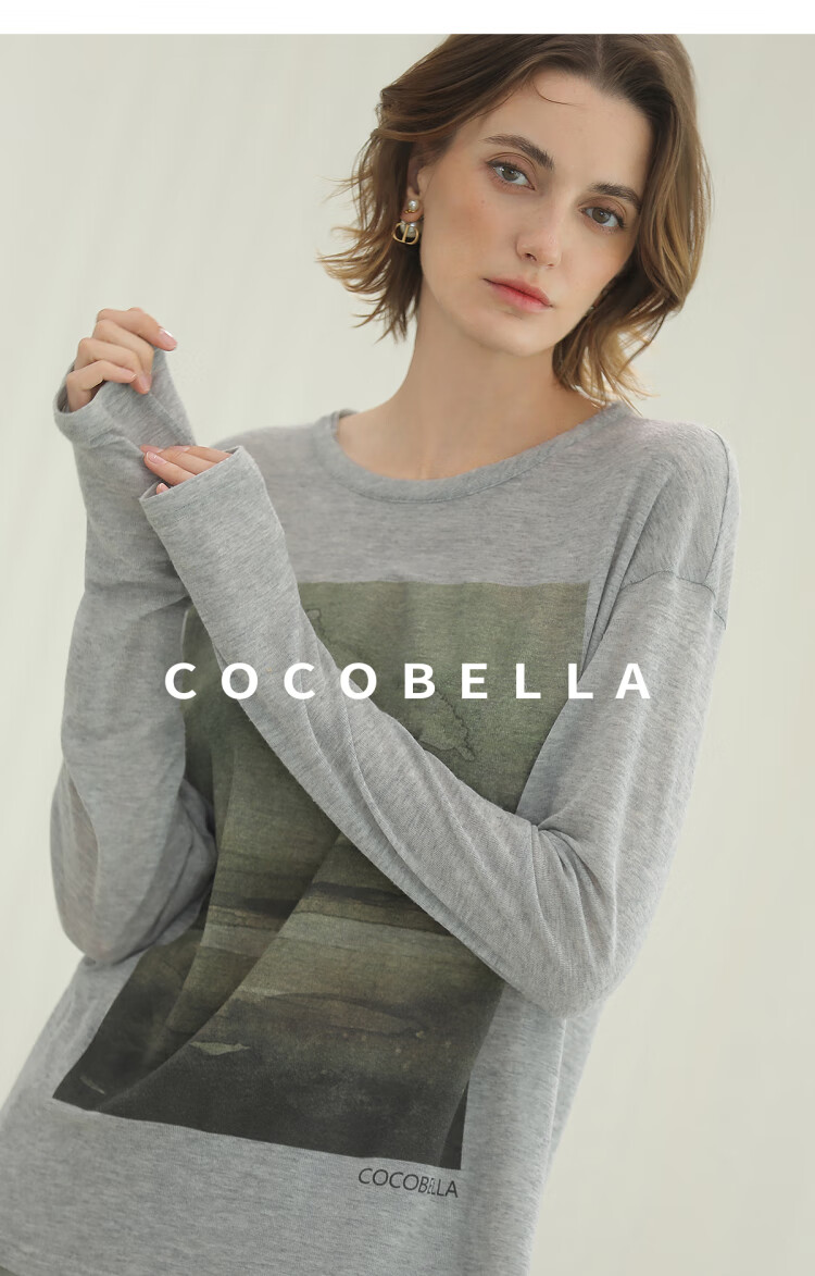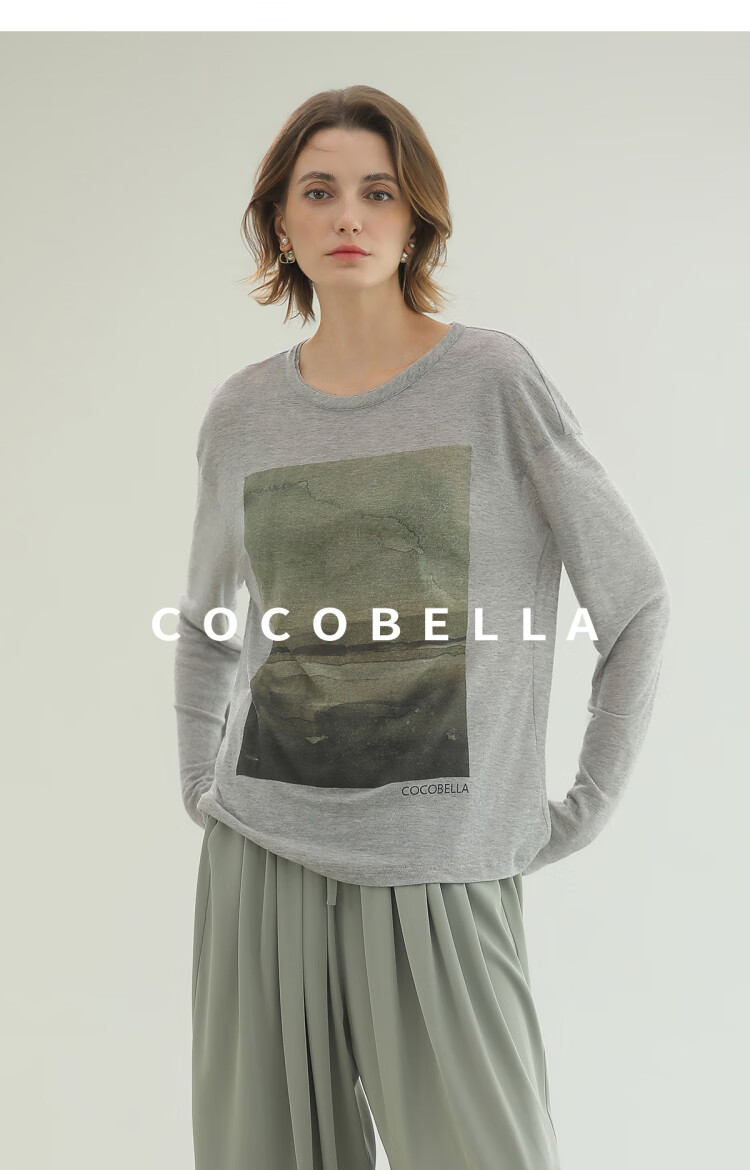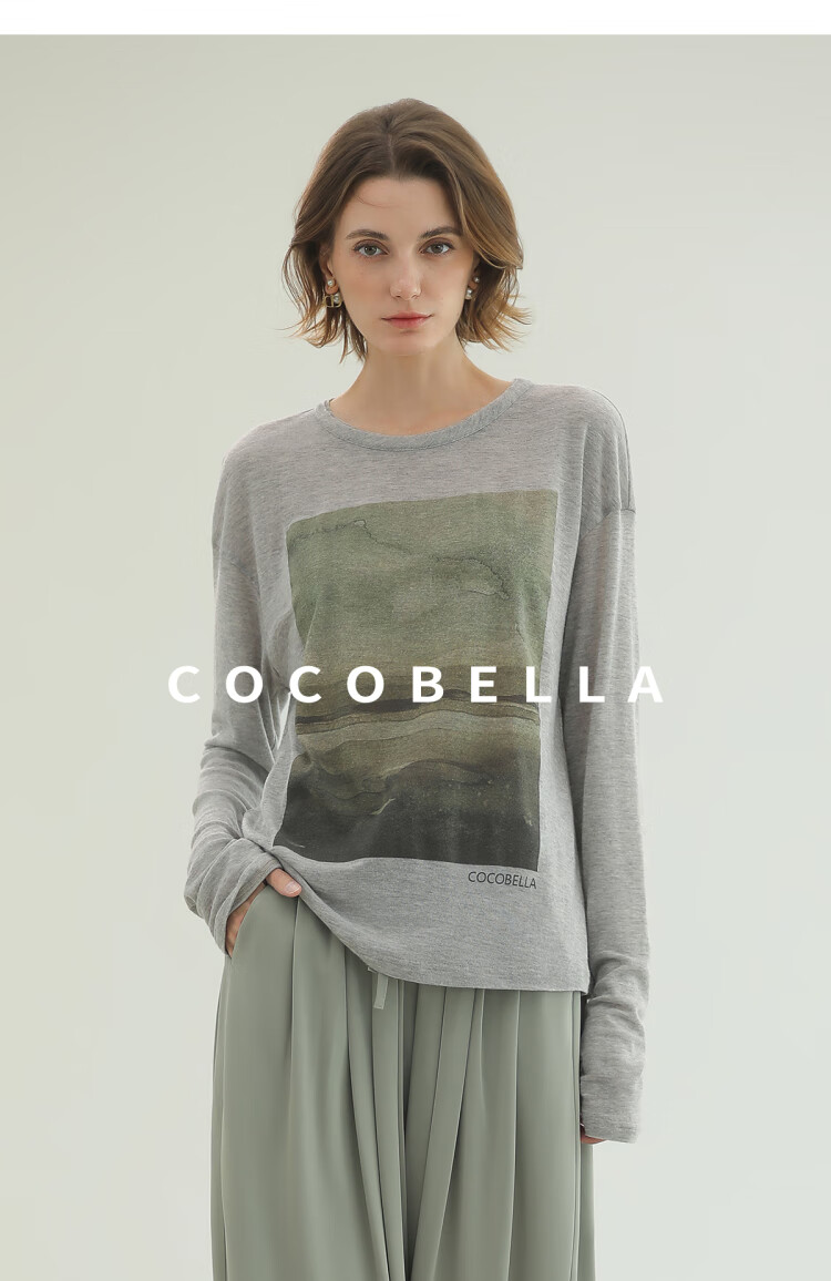 【限时秒杀】COCOBELLA印象派印花废土风毛边长袖T恤baby肤感打底衫TS3018