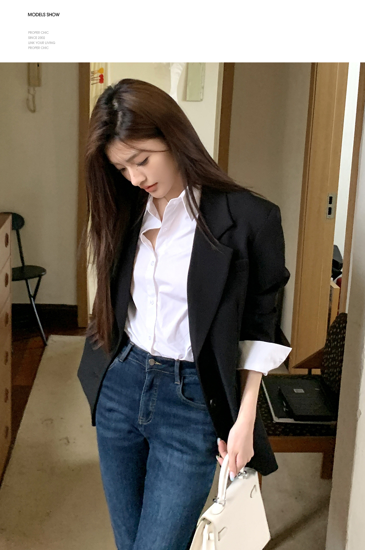 西遇复古经典西装外套女秋季新款经典时髦显瘦气质翻领外套SS141041