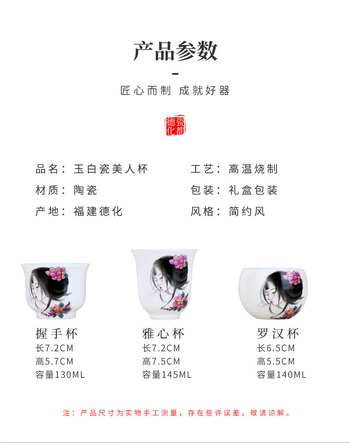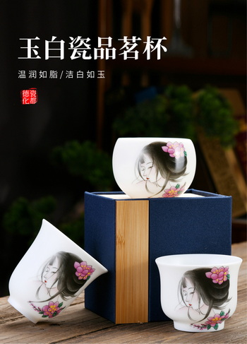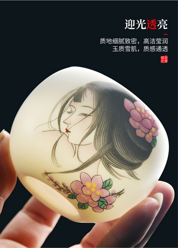 【温润如脂 洁白如玉】珍瓷窑 羊脂玉 古典美人 主人杯 礼盒装