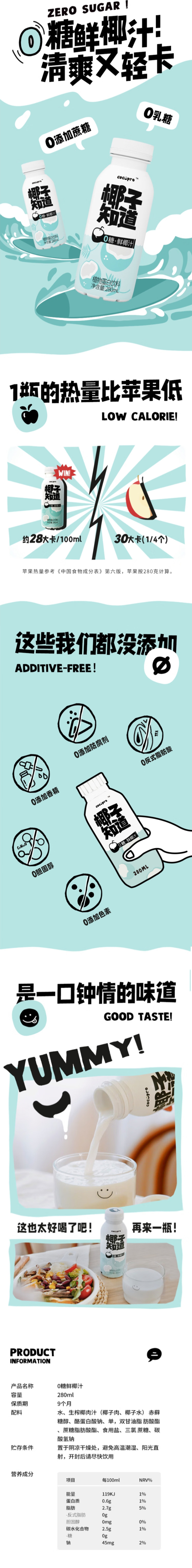 椰子知道 0糖鲜椰汁椰汁250ml、280ml