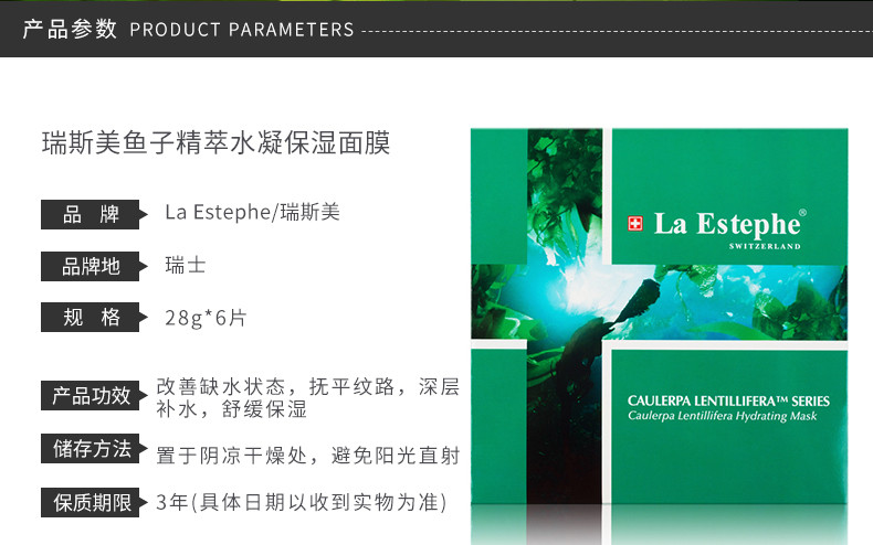 【自营】【李佳琦推荐】LA ESTEPHE/瑞斯美 深海鱼子精萃水凝保湿补水面膜 6片/盒 H