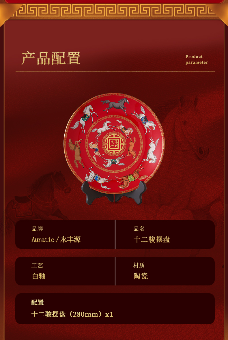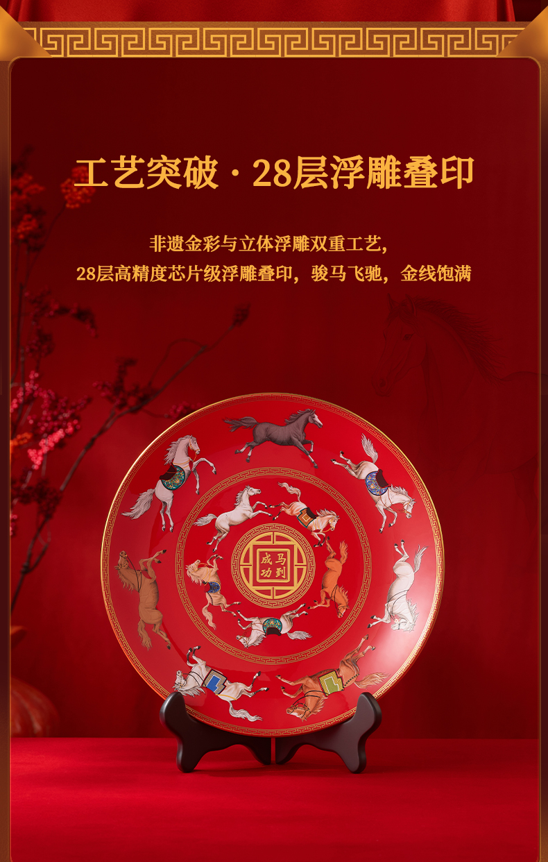 【自营】国瓷永丰源 十二骏摆盘SG25-274GM 马年春节联欢晚会典藏版